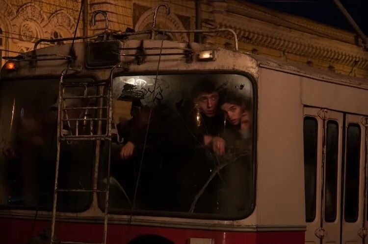 13、公交车上的年轻夫妇。