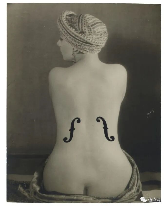曼雷运用重影手法,将小提琴上的F型音孔,重叠在Alice沙漏般的身躯之上,让人联想起一柄小提琴,玩味十足。