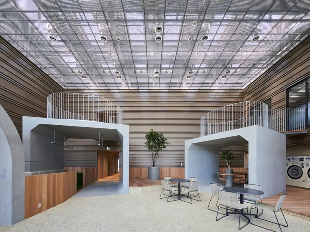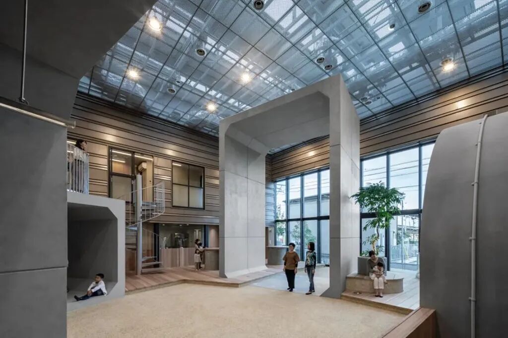 这里就像一个户外公园,有沙坑有草地,地下管道常用的混凝土结构件也被放置于空间中,作为建筑工程的象征。此外,加藤公司还设置了面包店、自助洗衣房、活动室等功能场所,大人们可以在这里聊天、工作或参加活动,孩子们也能和小伙伴一起快乐玩耍。