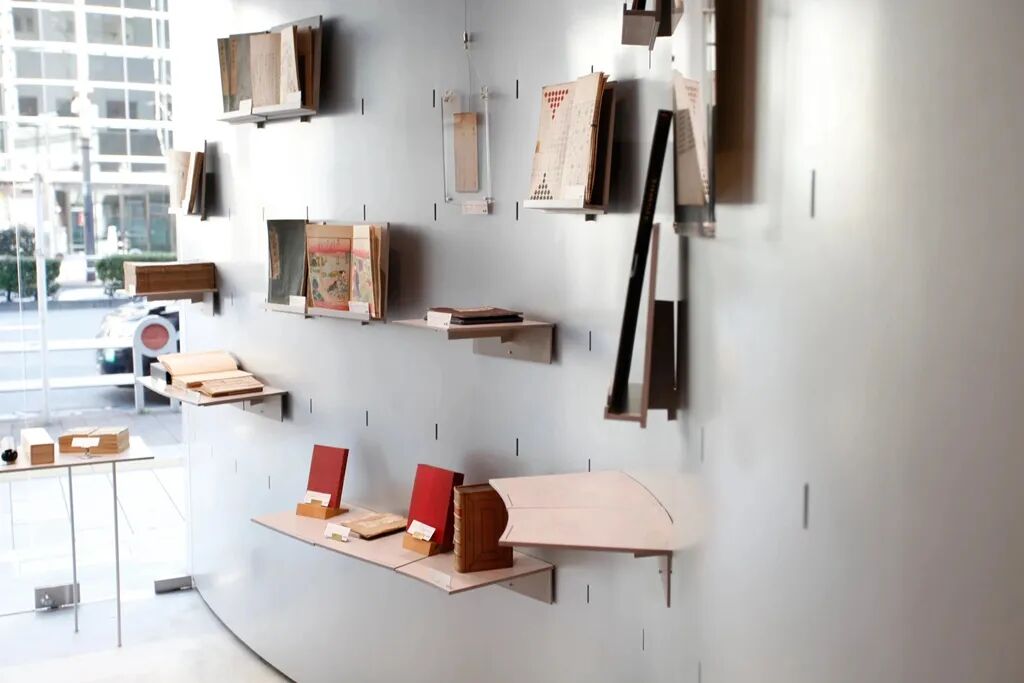 空间使用者是五位曾各自经营售卖旧书的店主,需要陈列的商品从书籍到版画、卷轴,种类繁多,因此,墙面设置了等距排列的小孔,店主可根据需要,灵活布置货架。