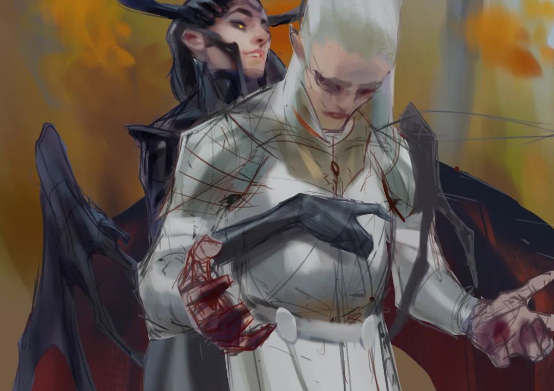 Yuriy Chemezov的绘画功底相当扎实,虽收获了近2W粉丝的关注,但是他的更新频率非常低,几乎可以算得上是“年更”,最近一次还是去年10月更新的这幅《Sun and Moon》,盔甲的光泽和质感细节令人惊叹,人物的表情塑造对比更是进一步增加了画面的故事感,并且还有许多耐人寻味的细节。