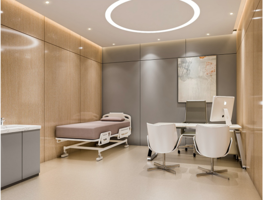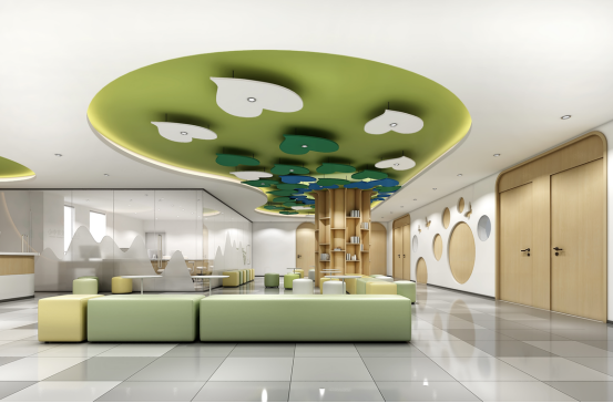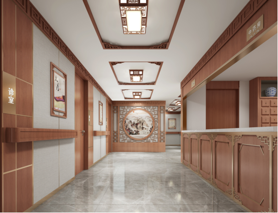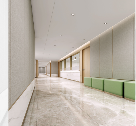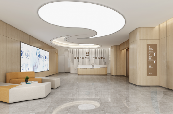 整体设计理念为现代,绿色,高效,人性化,装饰材料均都是采用生态环保,节能材料,主色调及照明系统以暖色为主,体现社区卫生服务中心的温暖关怀,虽是医疗空间但不同医院冰冷的设计风格,本空间给社区家人一种“家”的温暖。