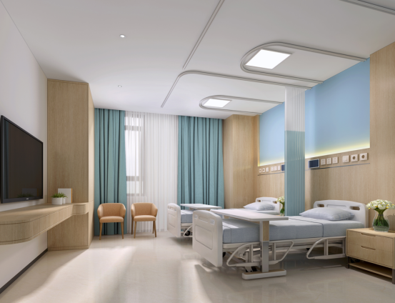 “发扬丝路精神,传承医护红飘带,呵护健康你我他”。设计中体现超前社区服务,医疗,保健,托老设计概念主要模式。将柔和优雅的曲线运用到主要服务空间之中,使亲民气质隐喻于室内空间。