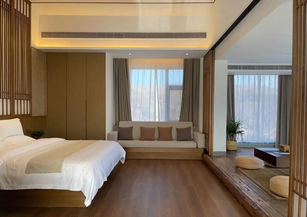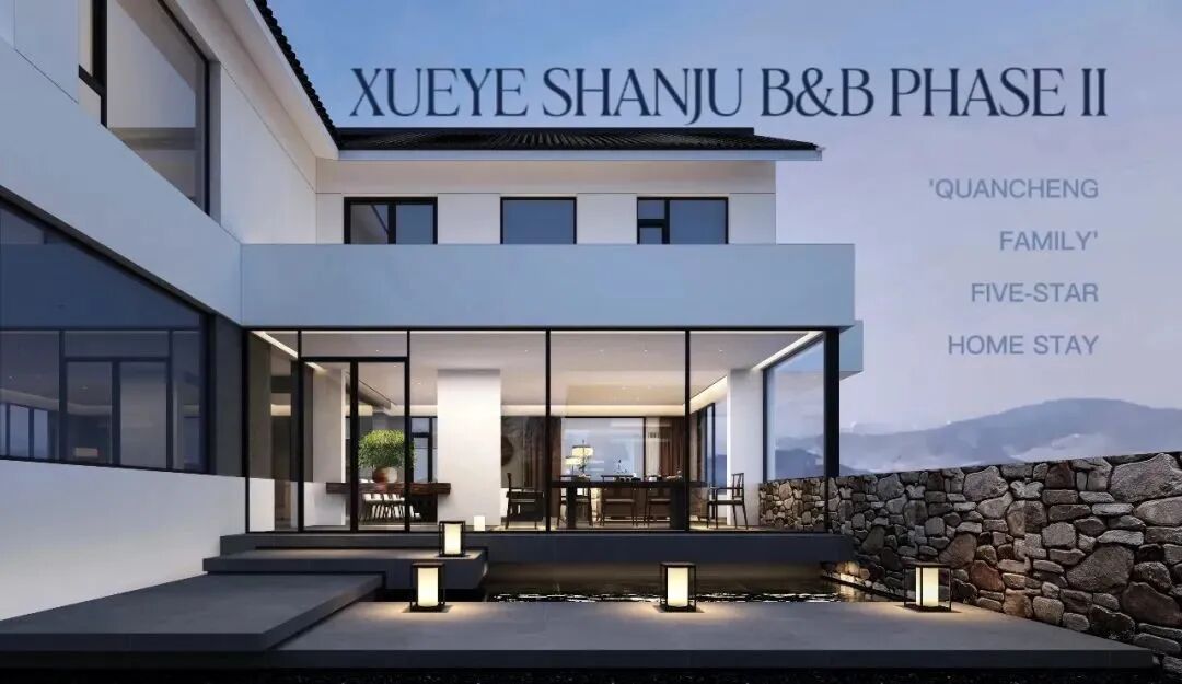 WPD同济冰珀设计集团2022年初落地作品——雪野山居二期民宿仍坐落于雪野山居民宿聚集区,二期民宿主打五星级精品民宿,室内集会客、餐饮、娱乐等诸多功能于一体的独栋别墅满足了家庭出游及公司团建等多种需求。