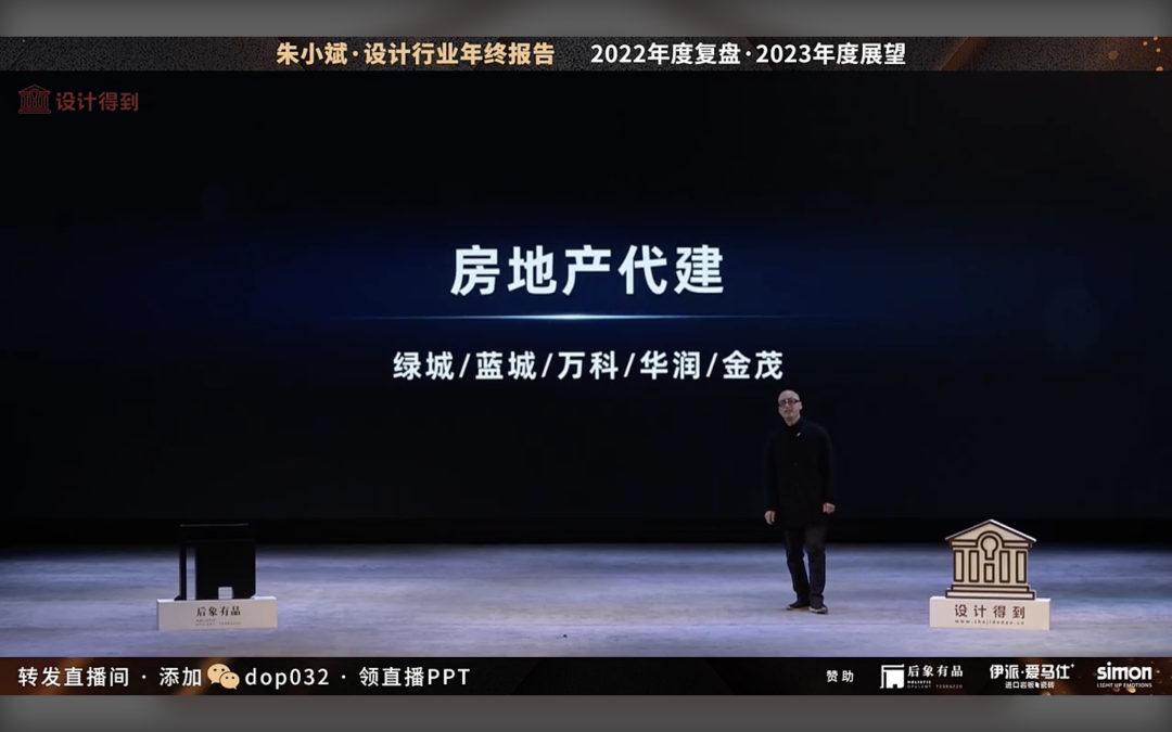 另外一块就是我们发现接下来设计公司面对的甲方不再是全国这么多的房地产,而是很多都是对少数的房地产专业代建公司,典型的代表有绿城、万科、华润等等。