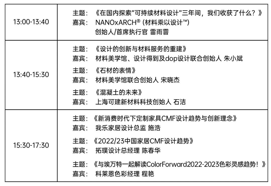 CMF设计军团、材料美学馆、材料乘以设计、杜邦™可丽耐®设计、德硅·雷诺丽特、劳尔色彩、MEC by SANTONI、东丽Ultrasuede、CUUNION