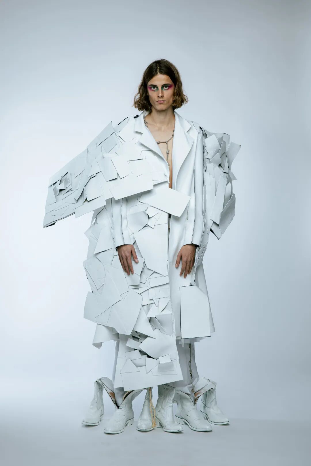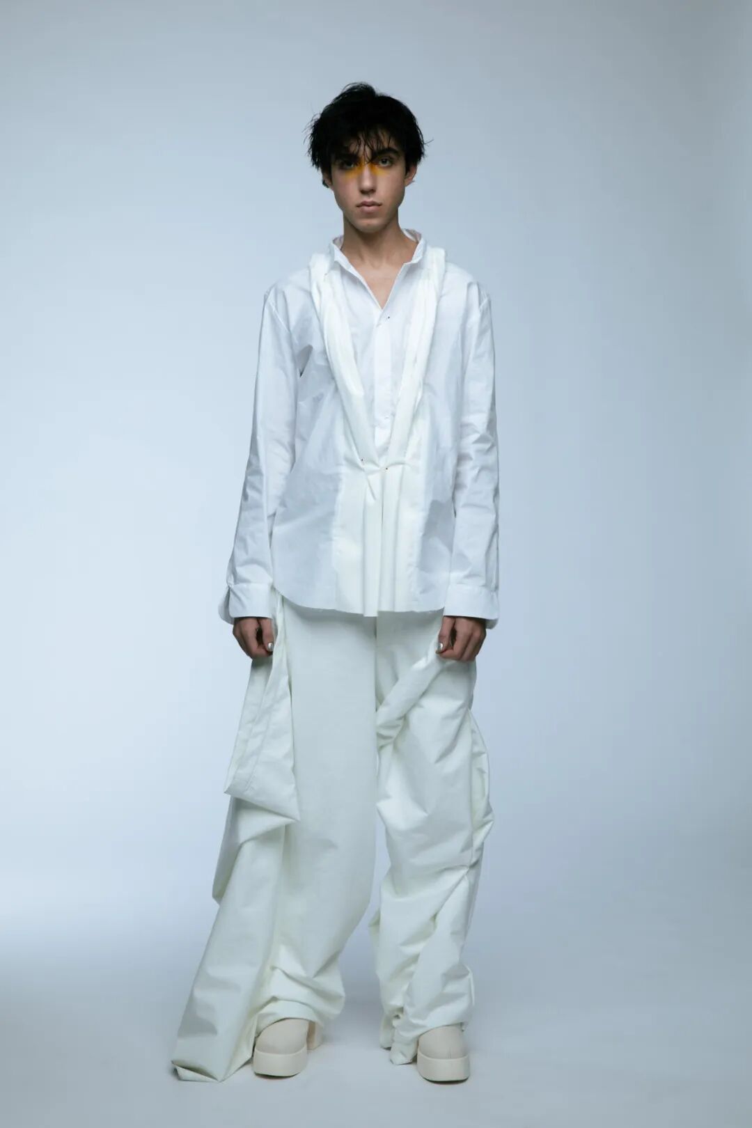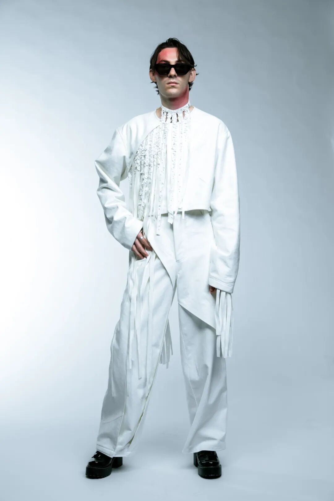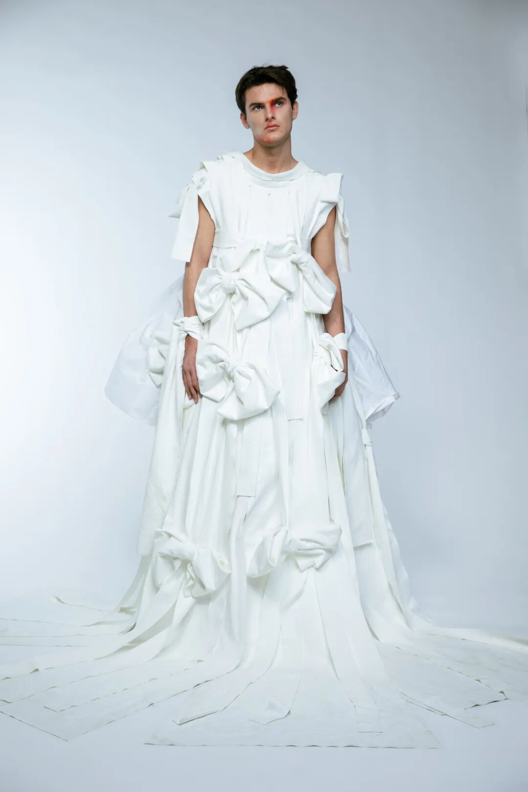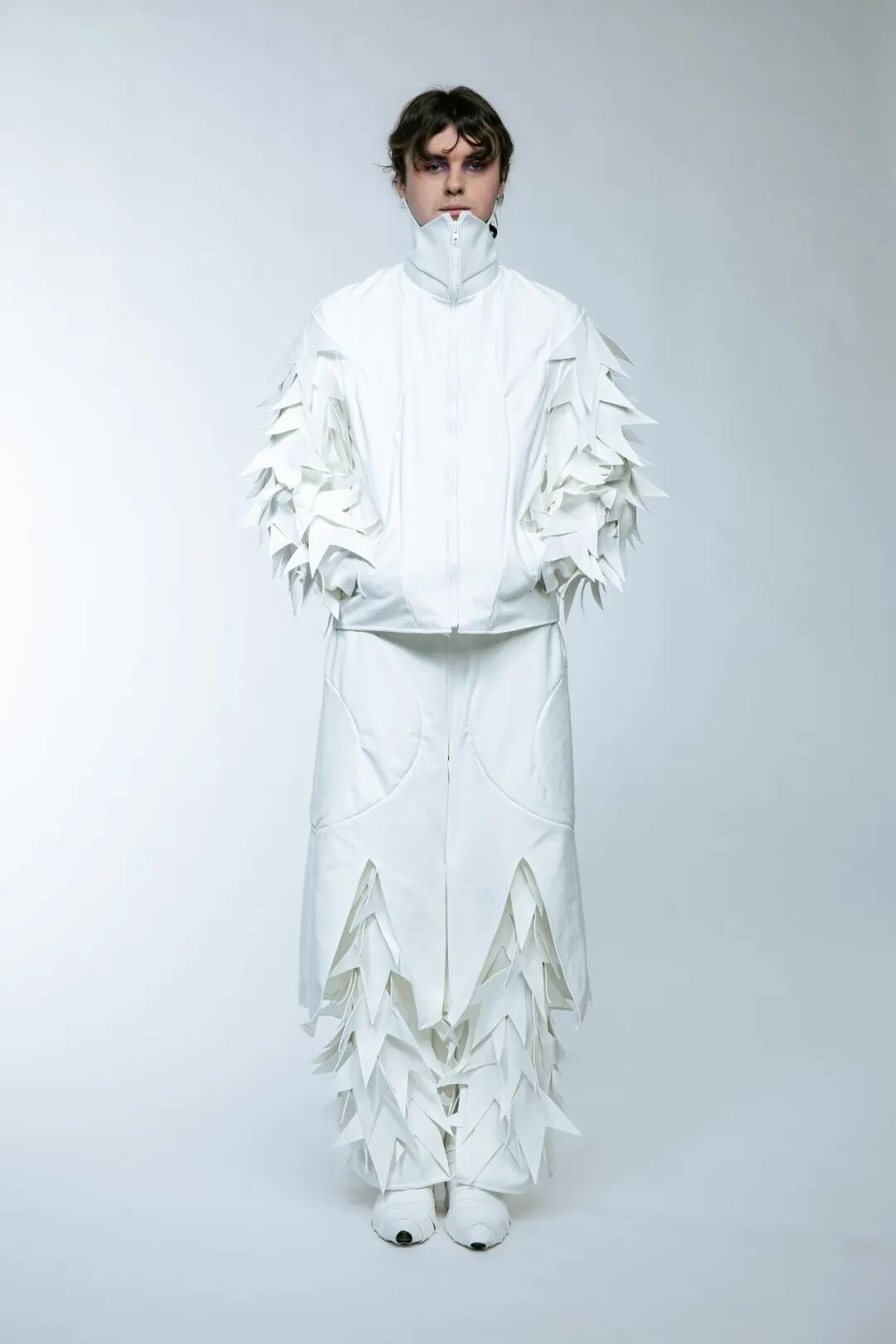 本次White Show共有161名来自BA Fashion下设的Womenswear、Manswear、FDM(fashion design with marketing)、Print、Knitwear五个专业的学生参与展示。共展出了131套服装,都是由圣马丁学院 BA Fashion 一年级的学生所制作完成。