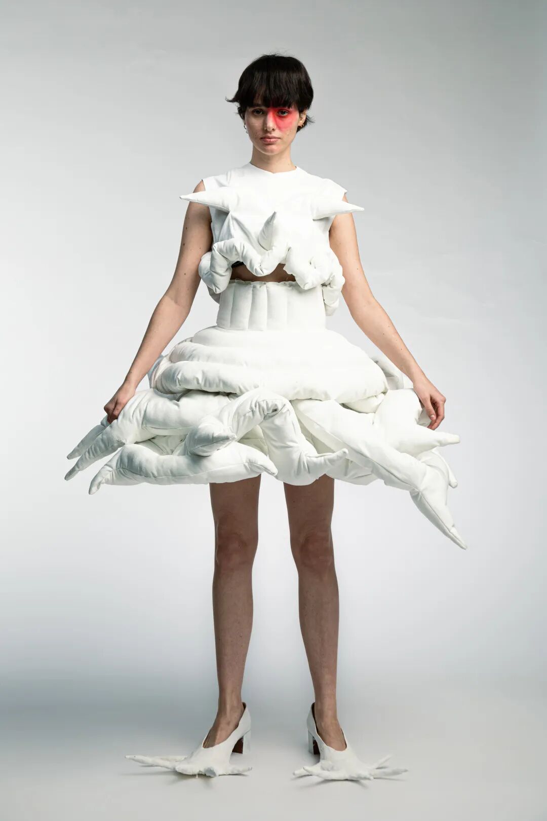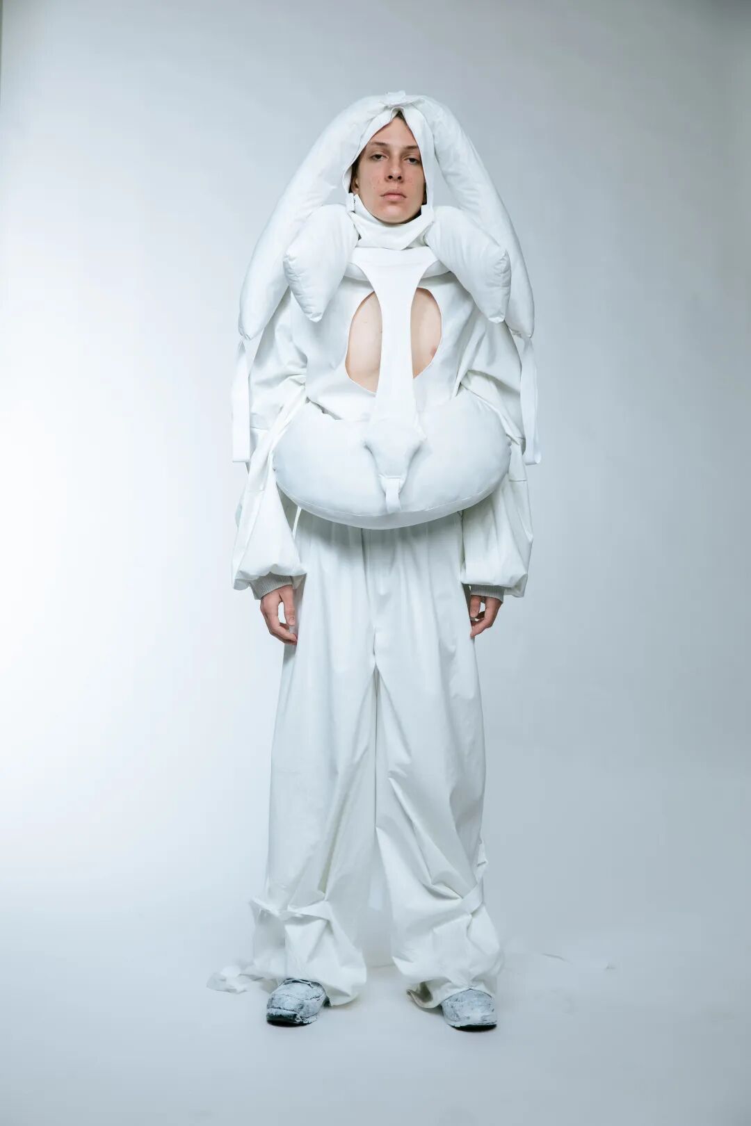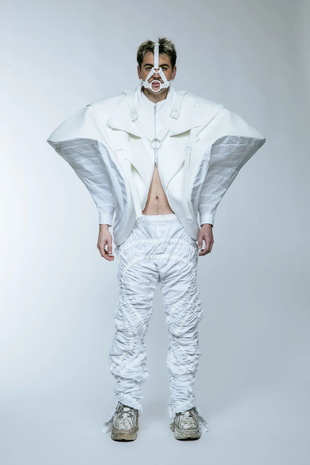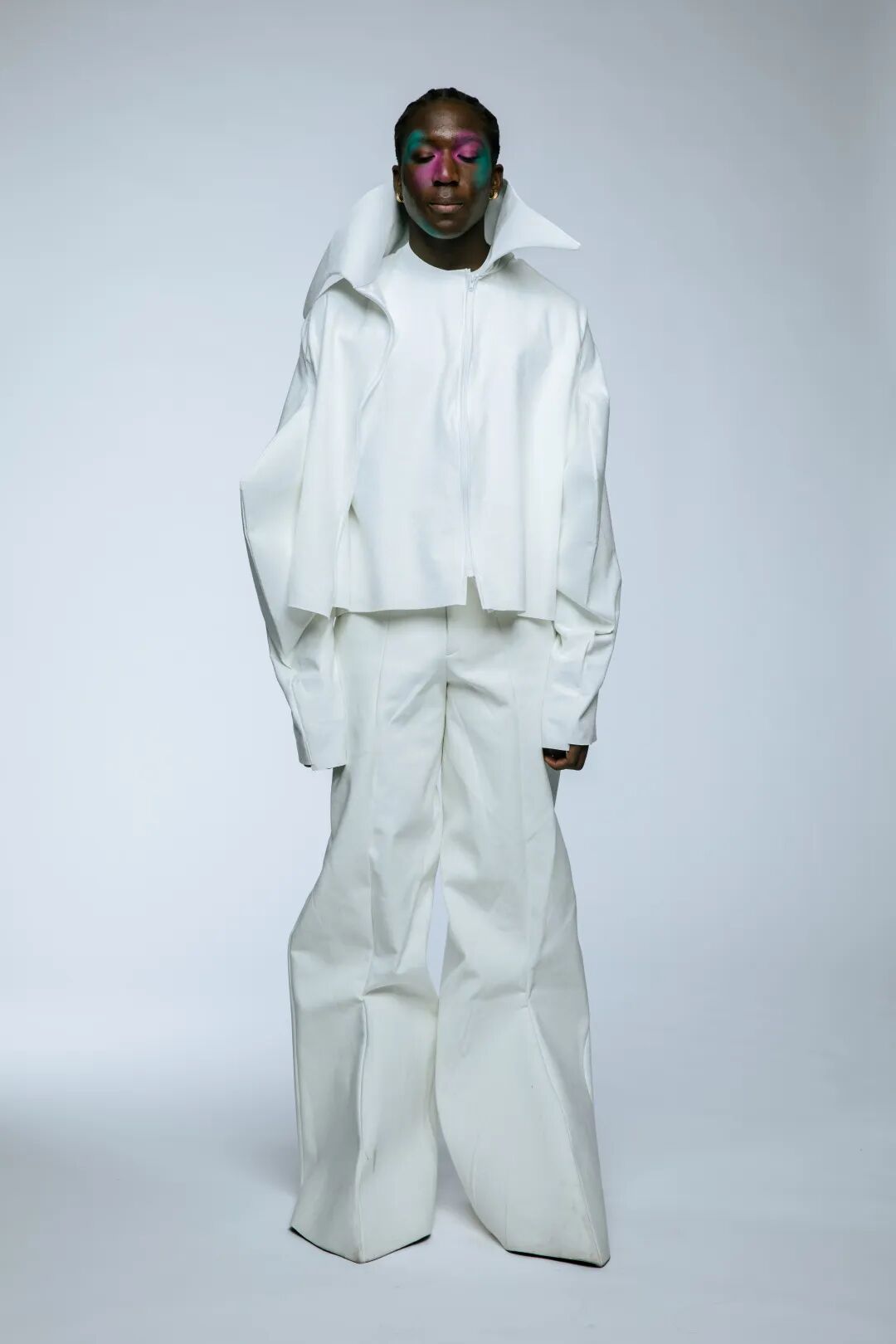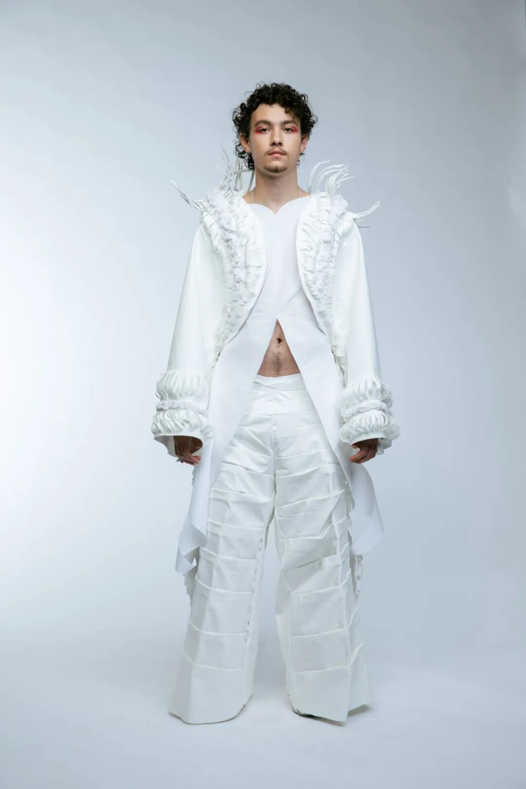 本次White Show共有161名来自BA Fashion下设的Womenswear、Manswear、FDM(fashion design with marketing)、Print、Knitwear五个专业的学生参与展示。共展出了131套服装,都是由圣马丁学院 BA Fashion 一年级的学生所制作完成。