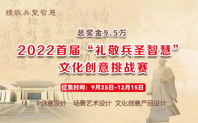 主题来源:《孙子兵法》作为世界上现存最早的一部兵书,被称为“兵学圣典”,同时,它也是一部谋略学、运筹学和哲学著作,被全世界称为“智慧奇书”。大赛旨在通过文化创意设计,或溯古、或创新,把孙子文化中蕴含的大视野、大战略、大智慧融入到文旅产品中,通过创造性、创新性转化,提炼打造具有兵家文化专属性和故事情感的创意产品,创艺引领美好生活。