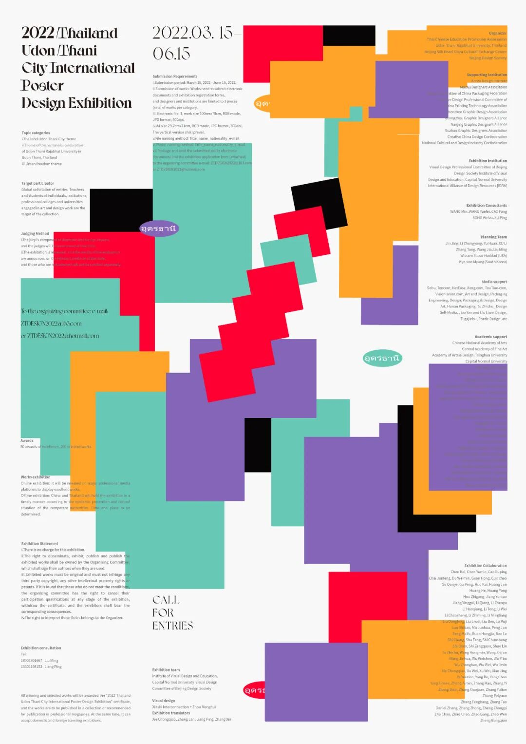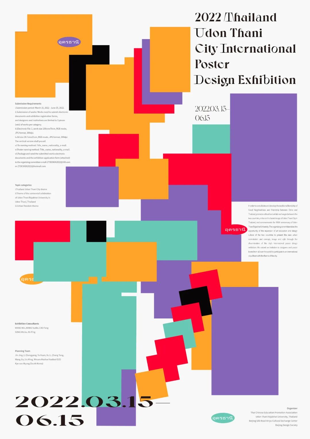 In order to consolidate and develop the traditional friendship of Good Neighborliness and Friendship between China and Thailand, promote cultural and artistic exchanges between the two countries, enhance the brand image of Udon Thani City in Thailand, and commemorate the 100th anniversary of Udon Thani Rajabhat University. The organizing committee takes the opportunity of the expansion of art education and design culture of the two countries to present the new urban connotation and concept, image and style through the dissemination of the city's international poster design exhibition. We extend an invitation to designers and poster lovers from all over the world to participate in an international visual feast with the theme of the city.
