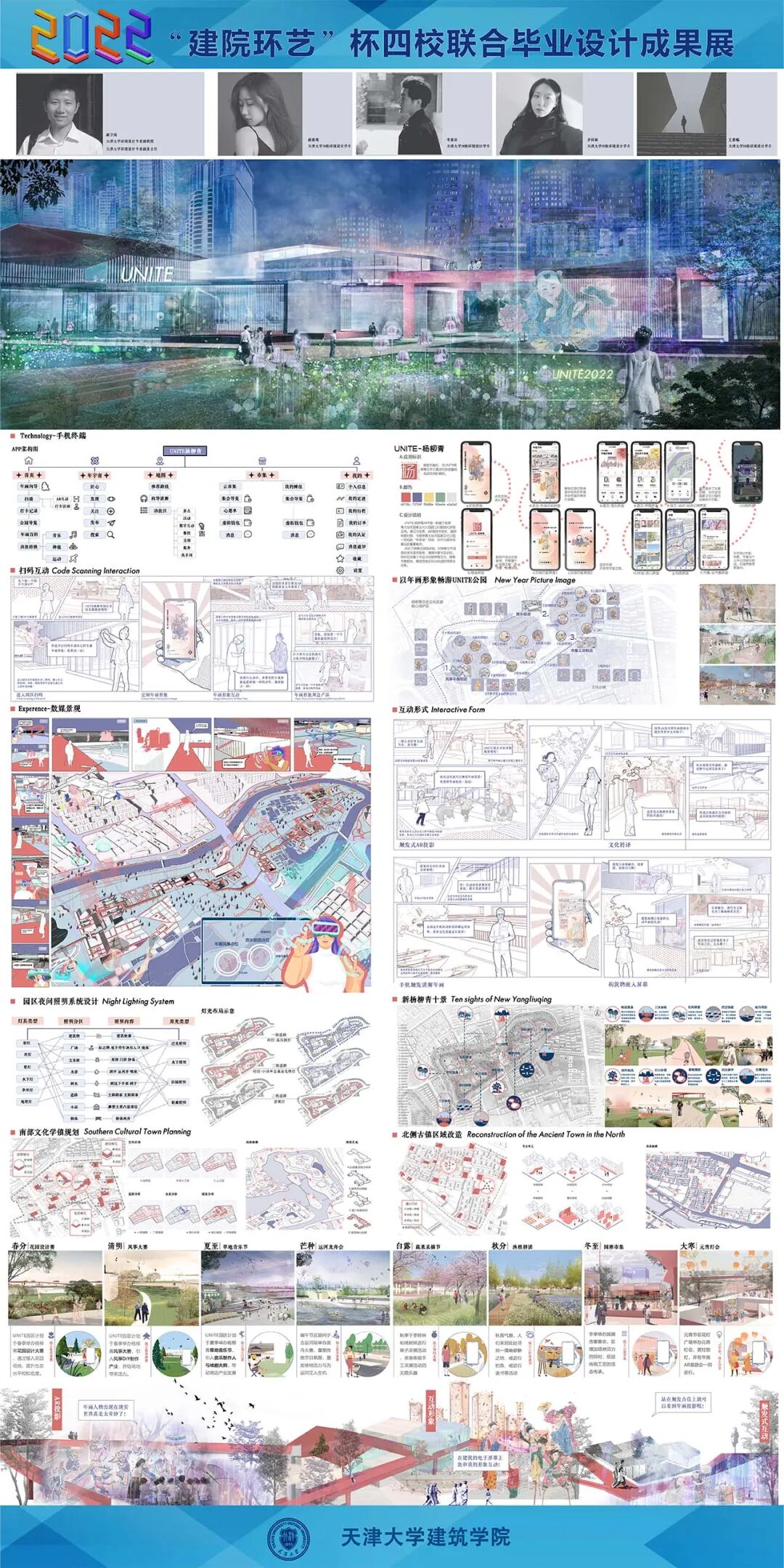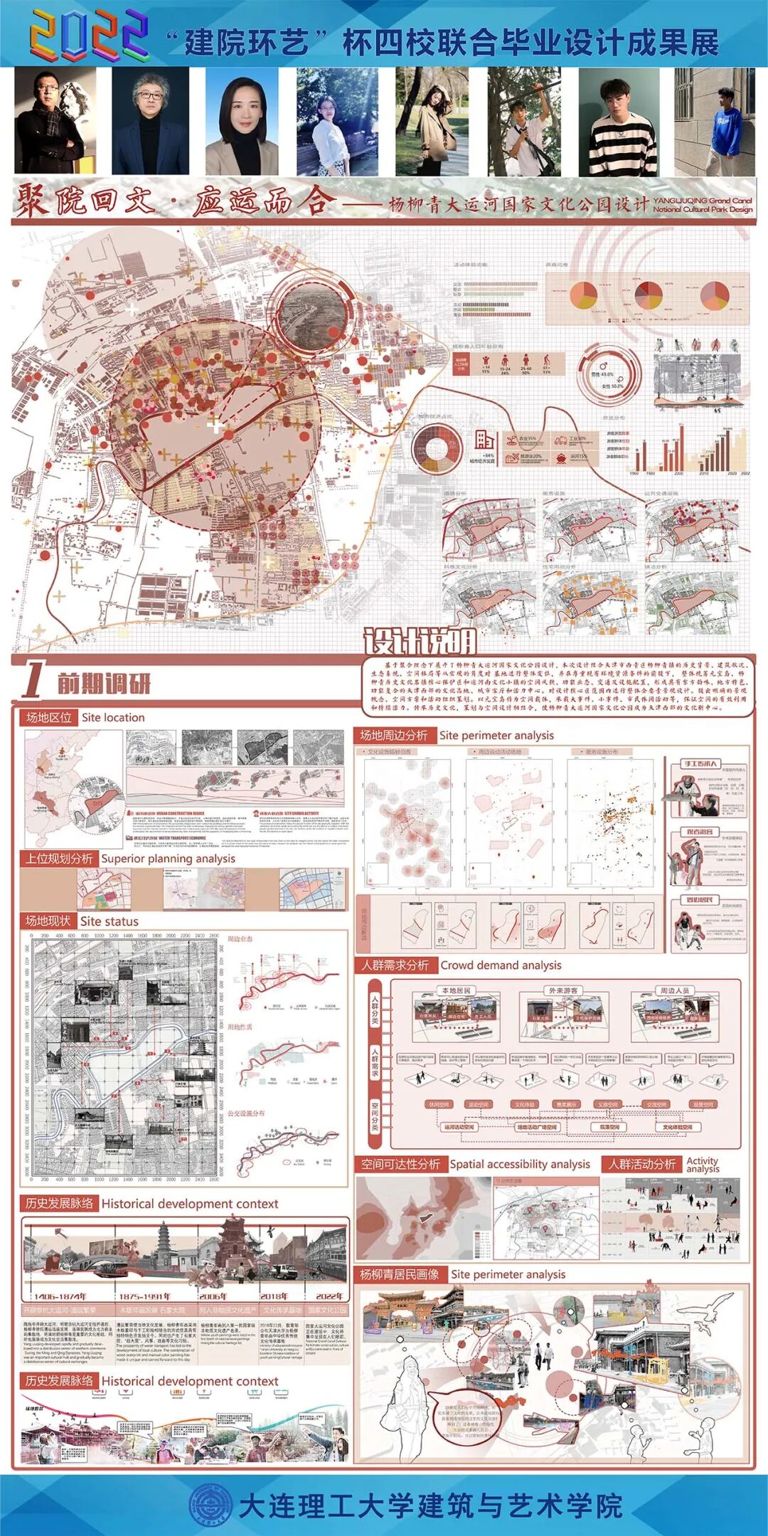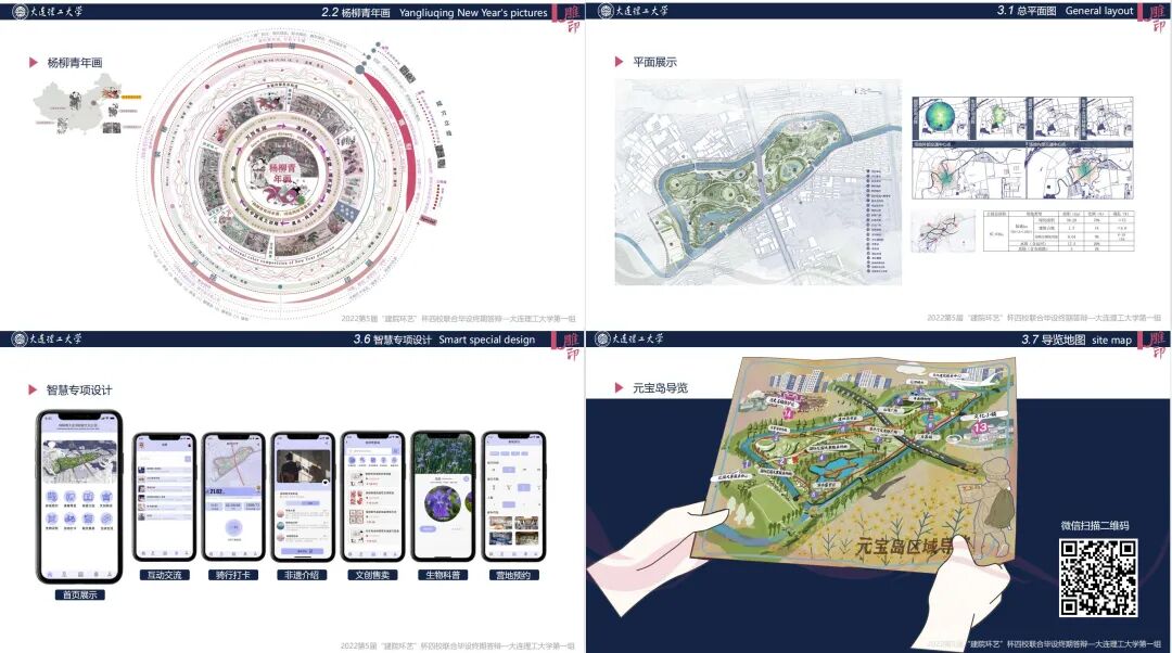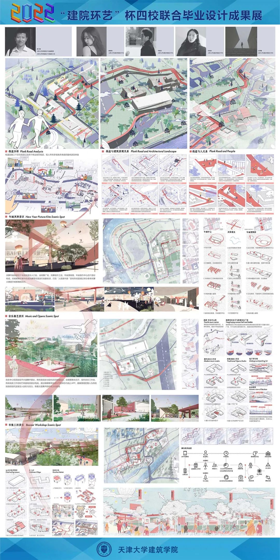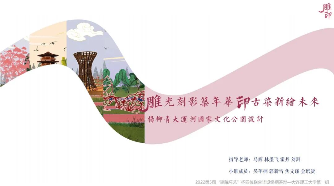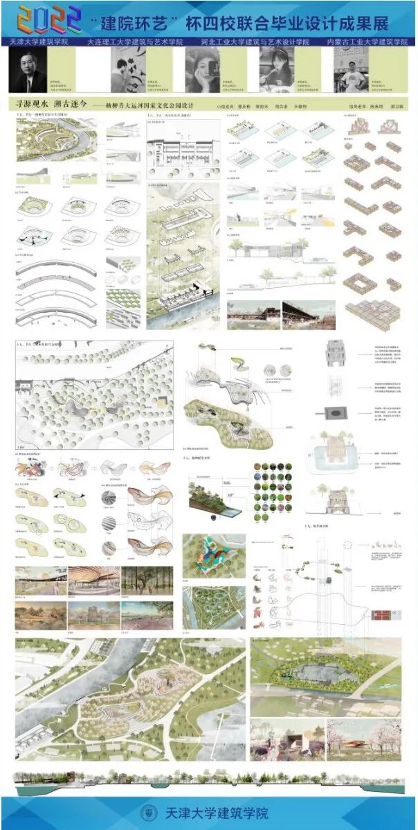 2022年6月2日,天津大学-大连理工大学-河北工业大学-内蒙古工业大学共同参与的第五届“建院环艺”杯四校联合毕设的终期答辩汇报会,以线上的形式圆满举行。会议由4个学校39名师生相聚云端,以“文化传承——天津市西青区杨柳青大运河国家文化公园设计(元宝岛)”为题。进行了成果分享和深入的交流。