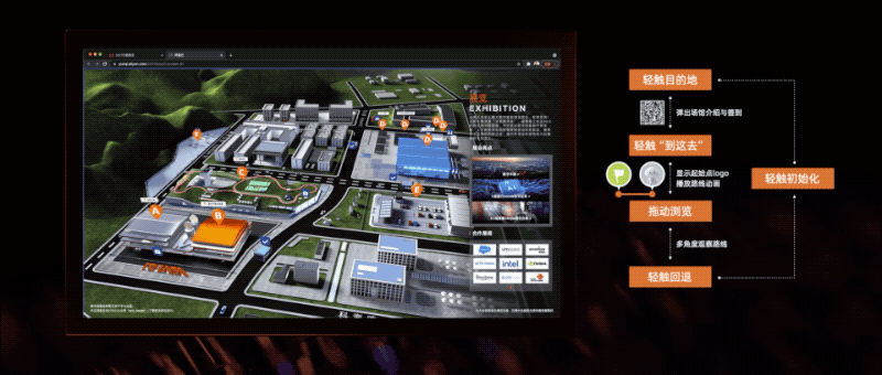 2021年的云栖大会数字导览对会展行业的现有信息呈现方式进行了解构,结合体素时代特性、XR的技术特性对信息及其呈现方式进行重构,增强了场景与信息的“远场表现”,提升了用户的“存在感”。