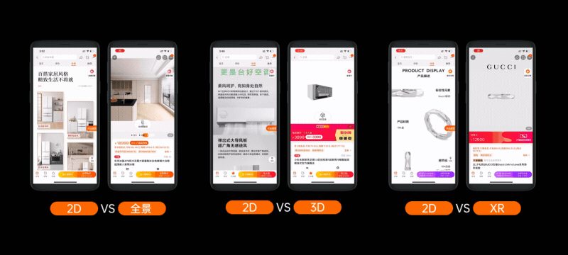 我们的体验维度逐渐的从一维的DOS操作模式过度到了具有XYZ空间信息的三维模式,体验维度的边界在被不断的拓宽。我们也逐渐从2D的像素时代开始向3D的体素时代转变。以前我们购物的时候总在看瀑布流的图片,现在我们可以看全景图、3D模型、XR试穿等以XR技术为核心的商品展示方式,信息的维度以及丰富度都有了质的飞跃。