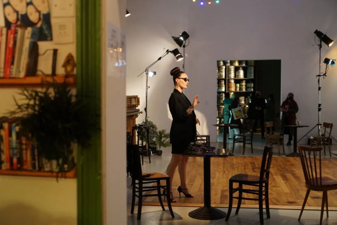 展览现场有一个类似于战后时代的老式酒吧的装置,播放着那个时代的令人陶醉的音乐。一男一女两位表演者,身着黑色正装,定期在参观展览的参观者中混在一起,甚至在所有人面前跳舞。
