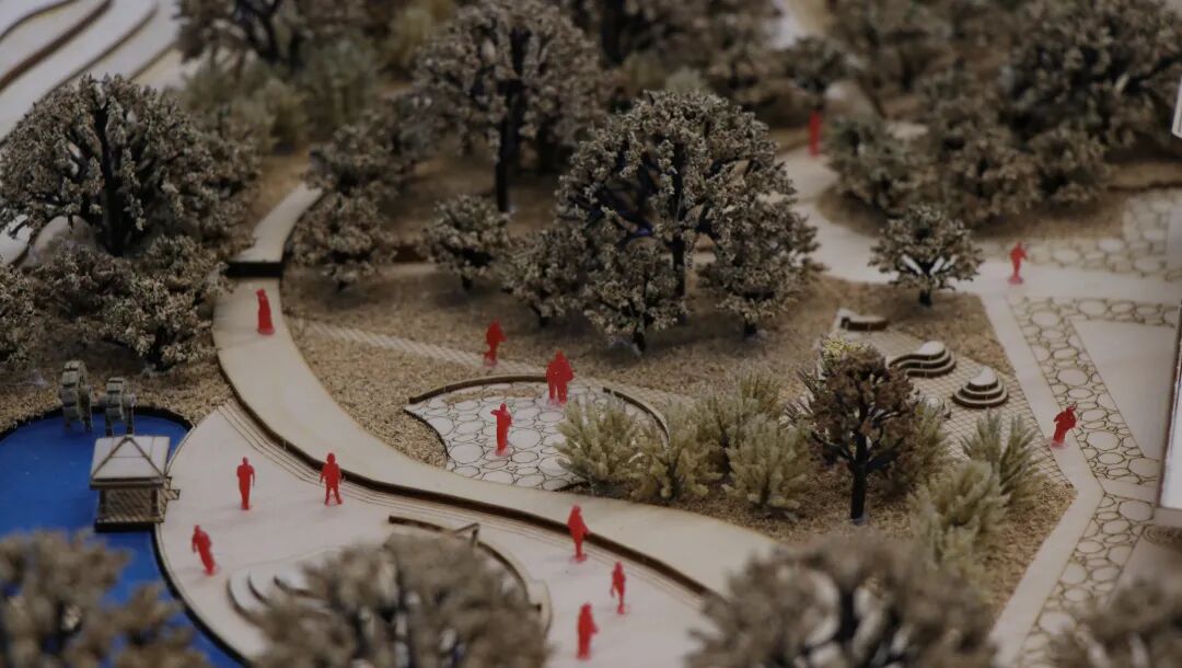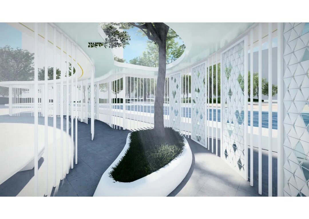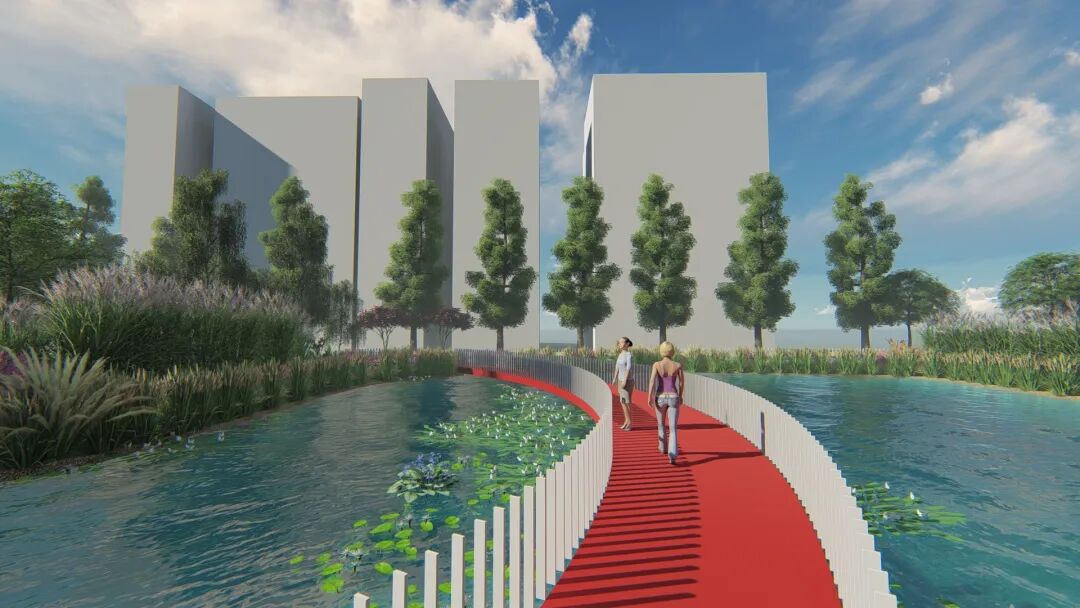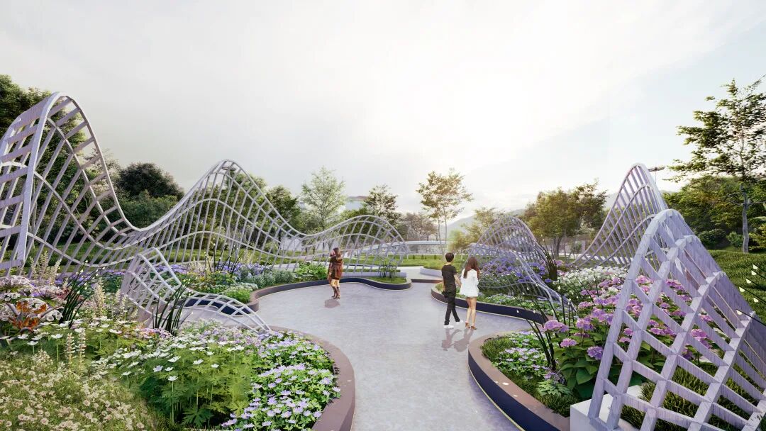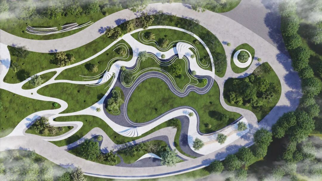 设计元素主要提取时间长河里,记忆脉络的延续。人的身体由无数脉络组成,诚然记忆中的御临河也如此,它的脉络在于它的使命,在于它承载的记忆。又到凤凰花朵开放的时候,想起某个好久不见的老朋友,记忆跟着感觉慢慢变鲜活。记忆脉络通过叶片的筋脉意向表达,提取出类似叶脉经络的形式加以转换,延展、扭曲为场地的平面形式。在这世上有多少城市的轮廓,能令我落泪但我只认得,一座梦里也能寻到回去的路故乡记忆是脉络的延续,而时光的河已入海流。