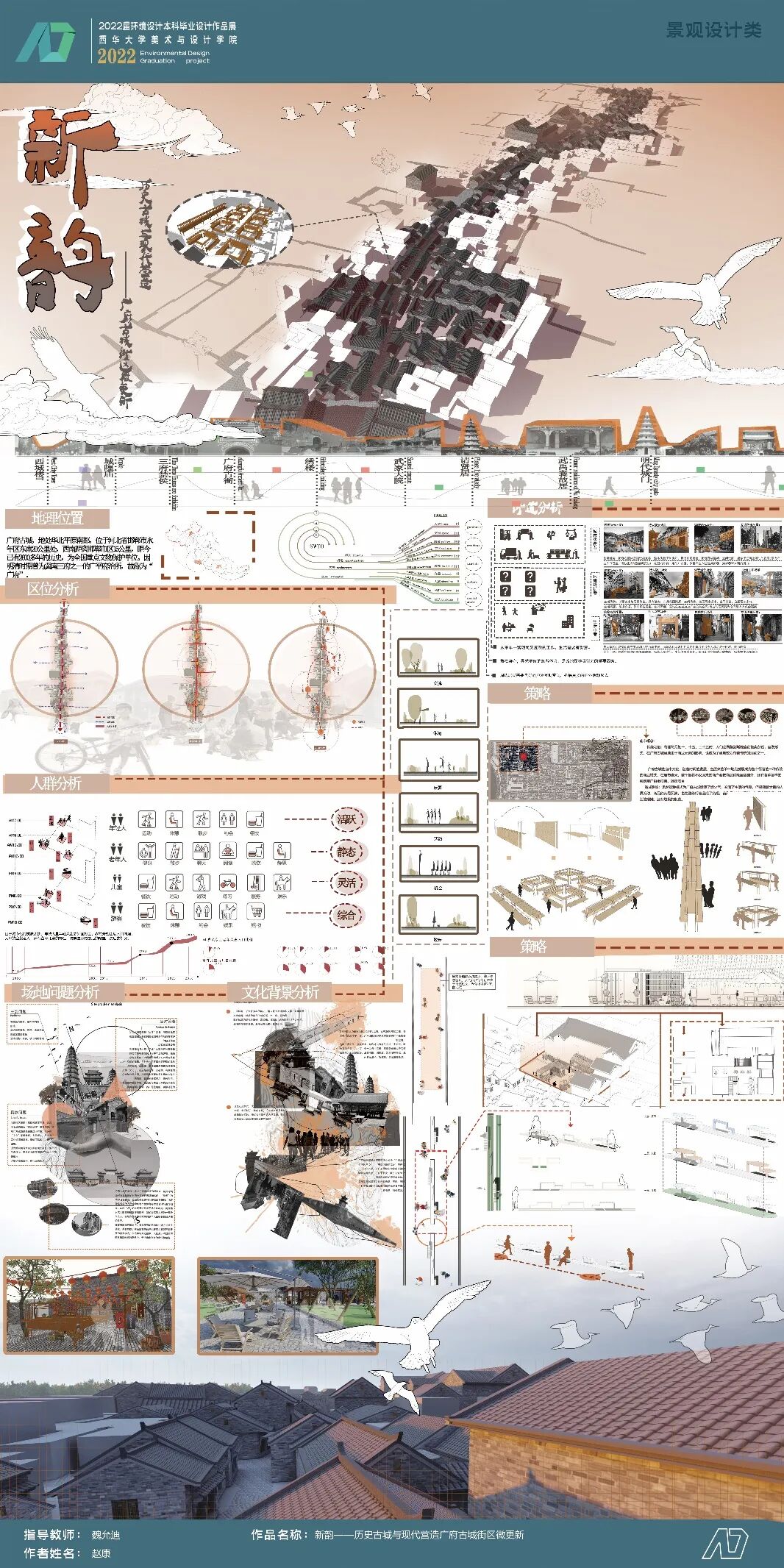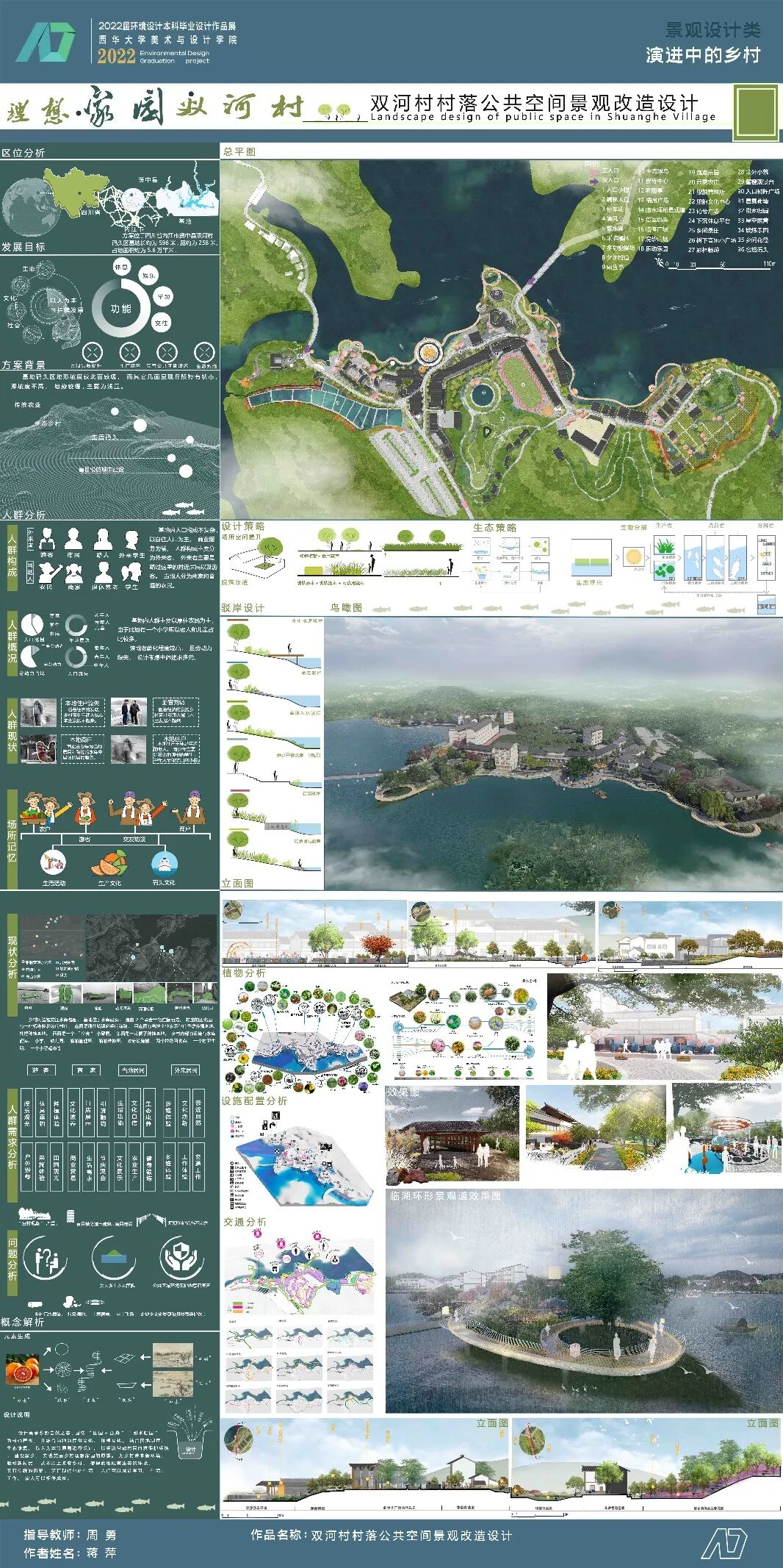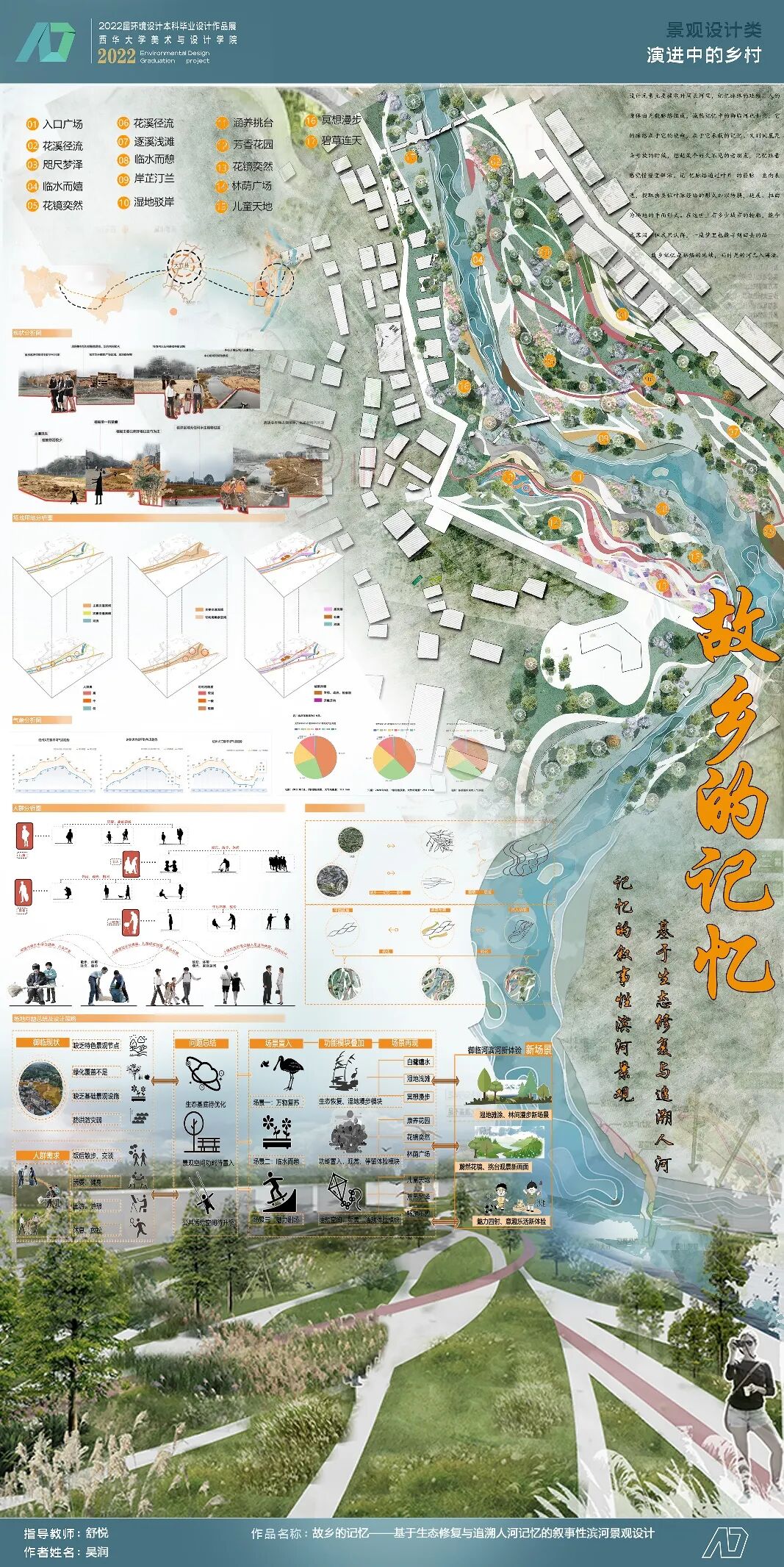 本次设计选址于四川省成都市西华大学,以探究海绵城市视角下的校园改造为主,通过实地调研分析校园现有水系状况,针对新校区存在的现状问题,提出相应的改造措施。基于海绵城市功能下,结合场地的自身的自然地理优势,大面积的绿化,人工湖与河道,以及湿润适宜植物生长的气候,依托原有格局进行造景和功能安排,再提取场地的历史文化记忆,融入设计细节中,形成一个以水域为依托的连贯的校园生态网络系统,并为师生和当地居民打造了一个可观赏、休憩、游乐的场所。