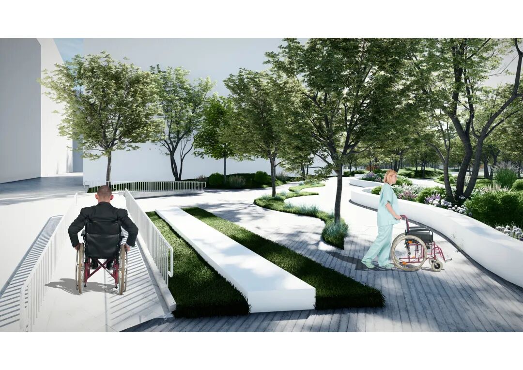 在项目背景、疗愈花园及无障碍设计原则的基础上,提出了一个医疗空间相互交融、放松休闲的疗养景观,为亚健康群体、老年人群体提供一个具有疗愈、互感性的公园设计。以“医养、颐养、疗愈、快乐、”作为这次设计的主题。