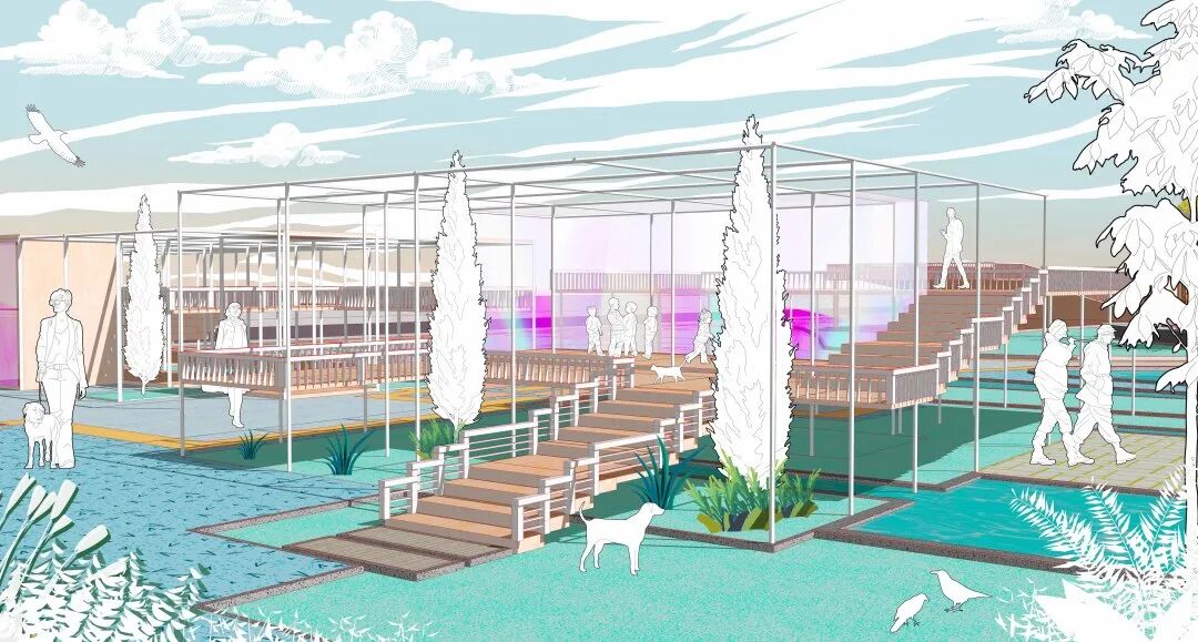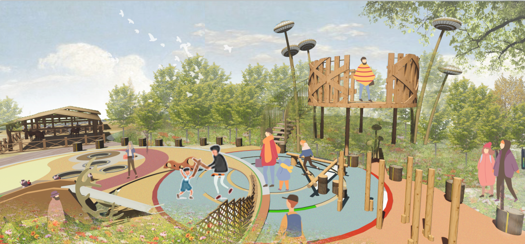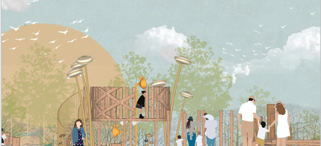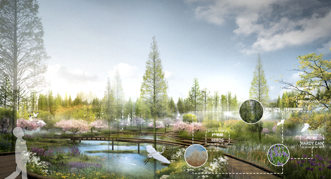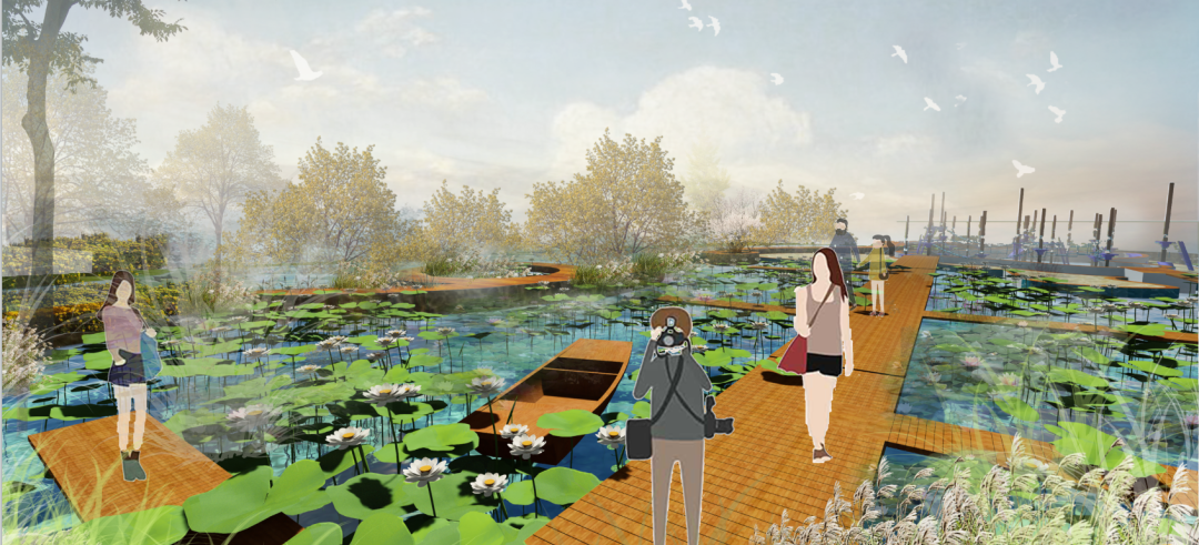项目设计坚持生态修复的理念,结合当地的地域特色与地势环境,打造一个修复城市湿地生态的绿色补丁。根据不同景观区主导功能的差异,设置六个不同的功能区,因地制宜的设计建设一个提供给游客运动、游乐、教育、保护的健康绿色氧吧。通过生态修复结合再生设计,给鸟类、两栖动物、水生动植物打造一个透净的新家园。