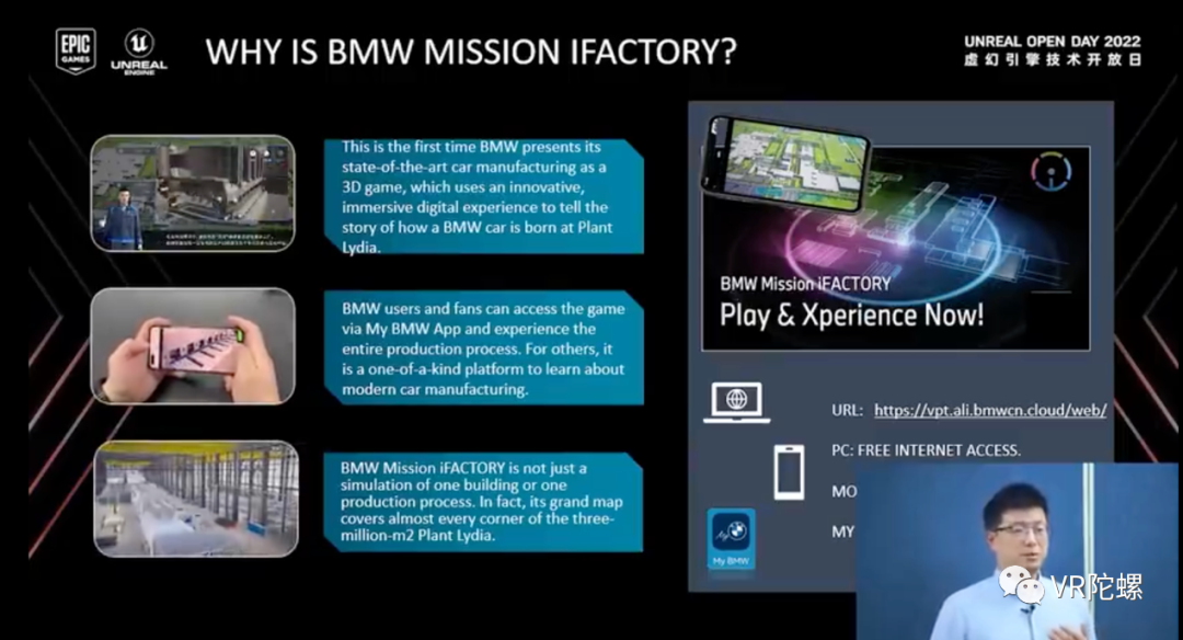 工业建筑方面,通过虚幻引擎打造 3D 数字孪生模型再落地实施,今年也有了标志性的成果。2022 年 6 月,总投资高达 150 亿元的华晨宝马生产基地大规模升级项目(简称:里达工厂)正式开业。