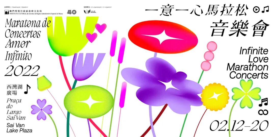 一意一心马拉松音乐会主视觉设计,以艳丽的彩色花朵为元素,表达了音乐带来的振奋和活力。