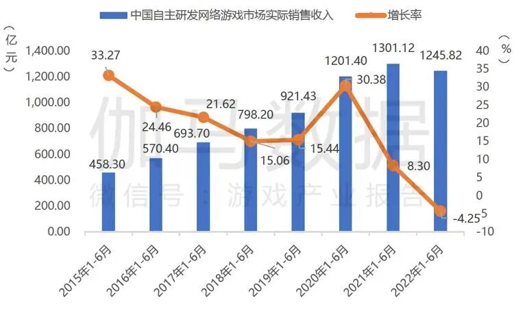 中国游戏产业2022年1-6月收入: