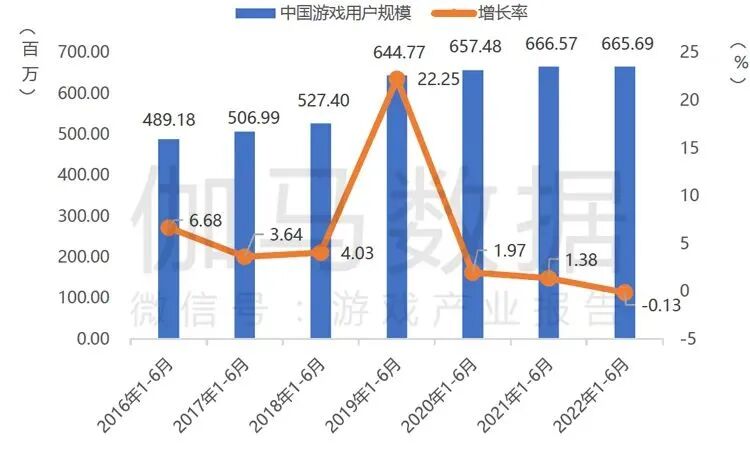 ● 2022年上半年中国游戏用户约6.66亿人,同比下降0.13%