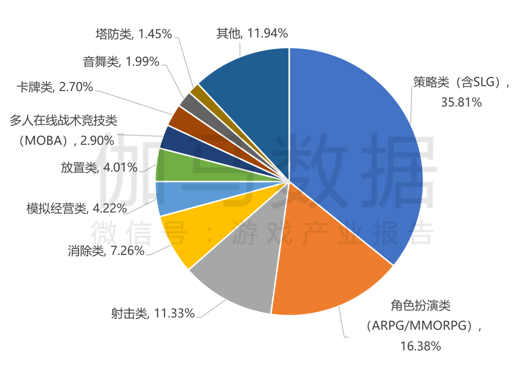 图:中国自主研发移动游戏海外市场收入前100类型收入占比