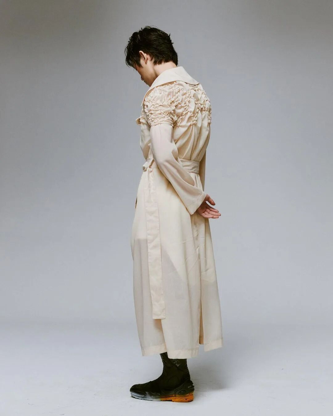 PONDER.ER,是一个不分性别的品牌,Alex Po和Derek Cheng解释说:“我们的品牌是关于质疑和挑战现代男性气质的含义以及男装的可能性的。”