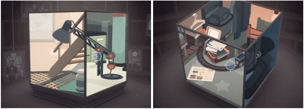 此外,《笼中窥梦》还有与玩法相结合的剧情设计。它讲述了一个患有PTSD的退伍老兵,走出内心与自己和解的故事。因此,游戏主要展现的是一个梦境的场景,同样并不那么注重逻辑,更依赖于用美术场景的变化、音乐的切换,来引导玩家产生情绪变化。