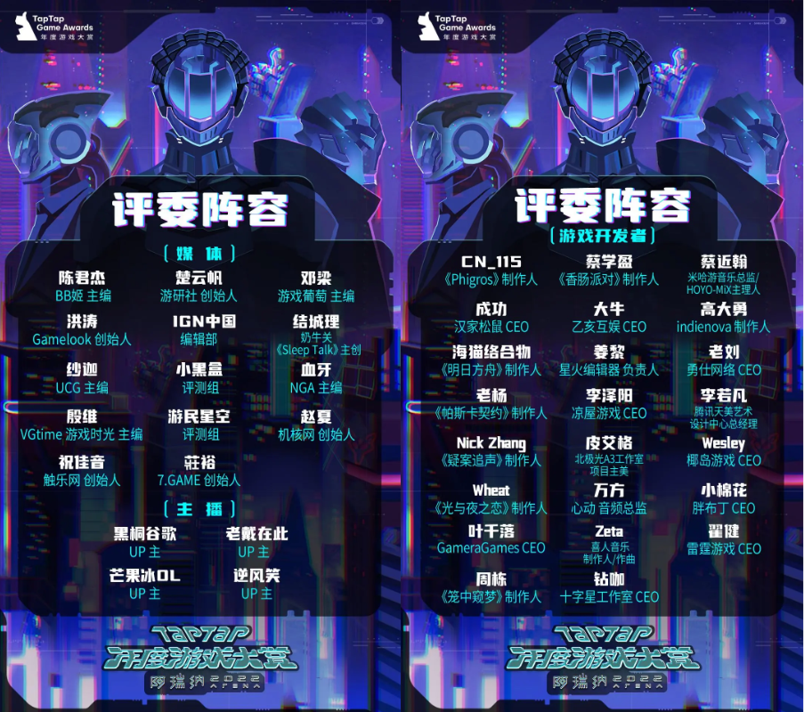 今天,2022 TapTap游戏大赏正式公布评审结果。
