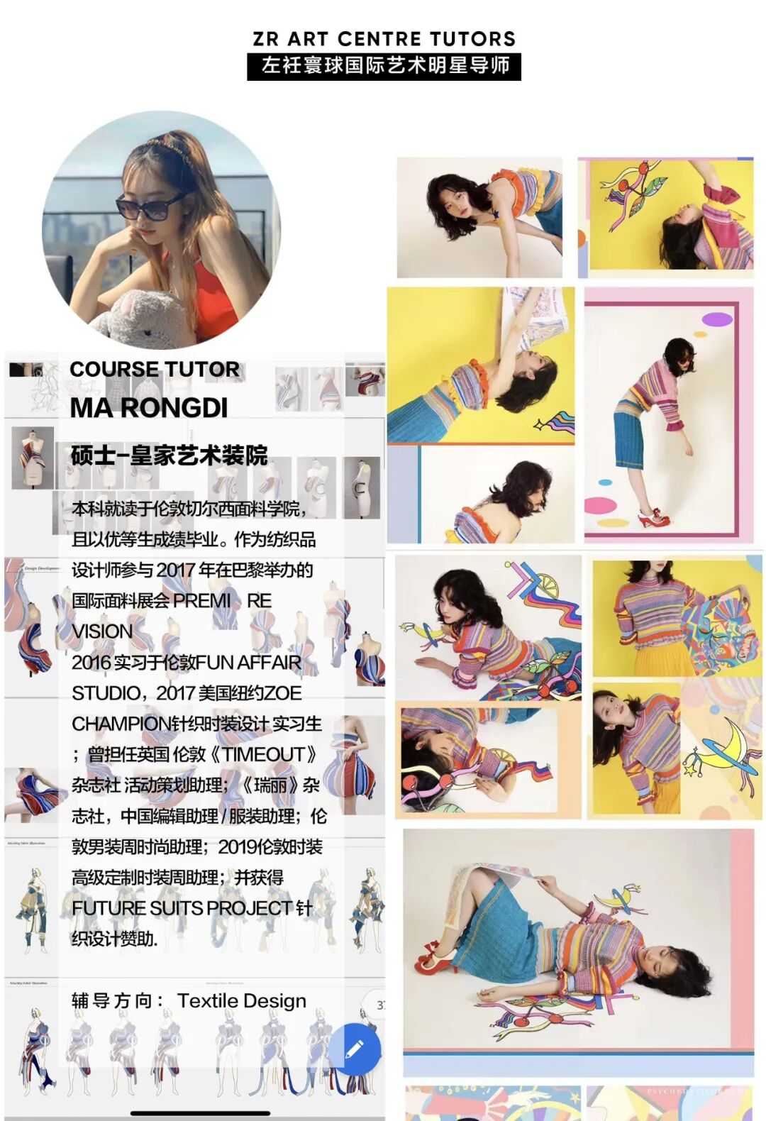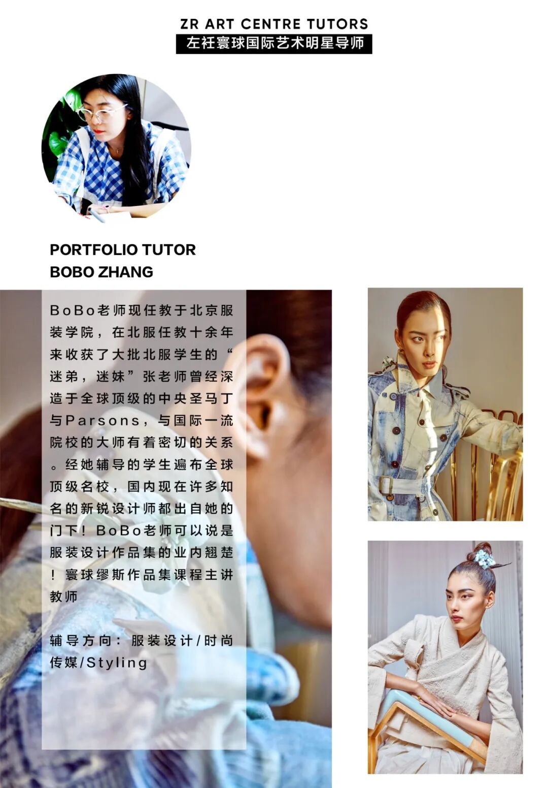我们对于导师筛选标准十分严格,导师除了需要毕业于专业排名世界前3的院校外,还需在业内有突出贡献和服装从业经验,且一定要有教育行业经验,我们拒绝虚假教师背景信息,拒绝没有水平滥竽充数的教师,在左衽寰球的每一名老师本身就是一名优秀的服装设计师。