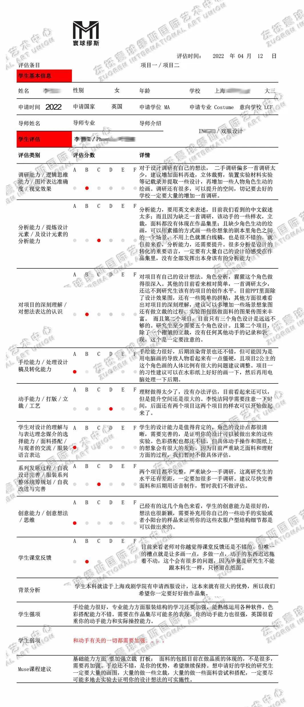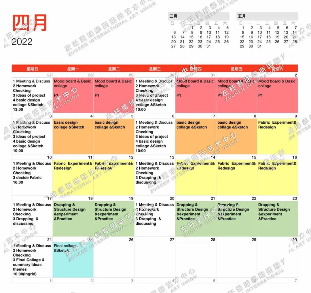 每完成一个阶段的辅导主带老师都会将作品集反馈给不同教研组和教学总监交叉审核,以保证作品集完成质量。