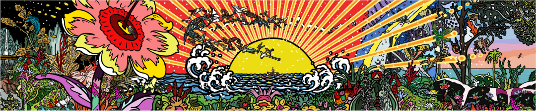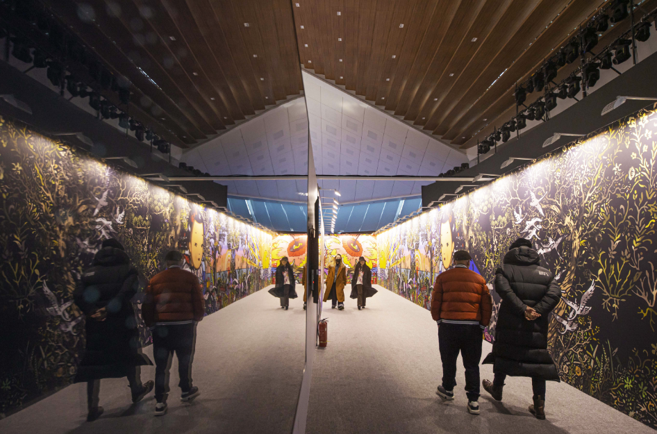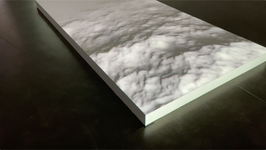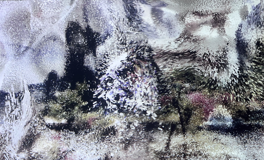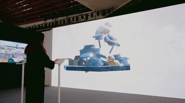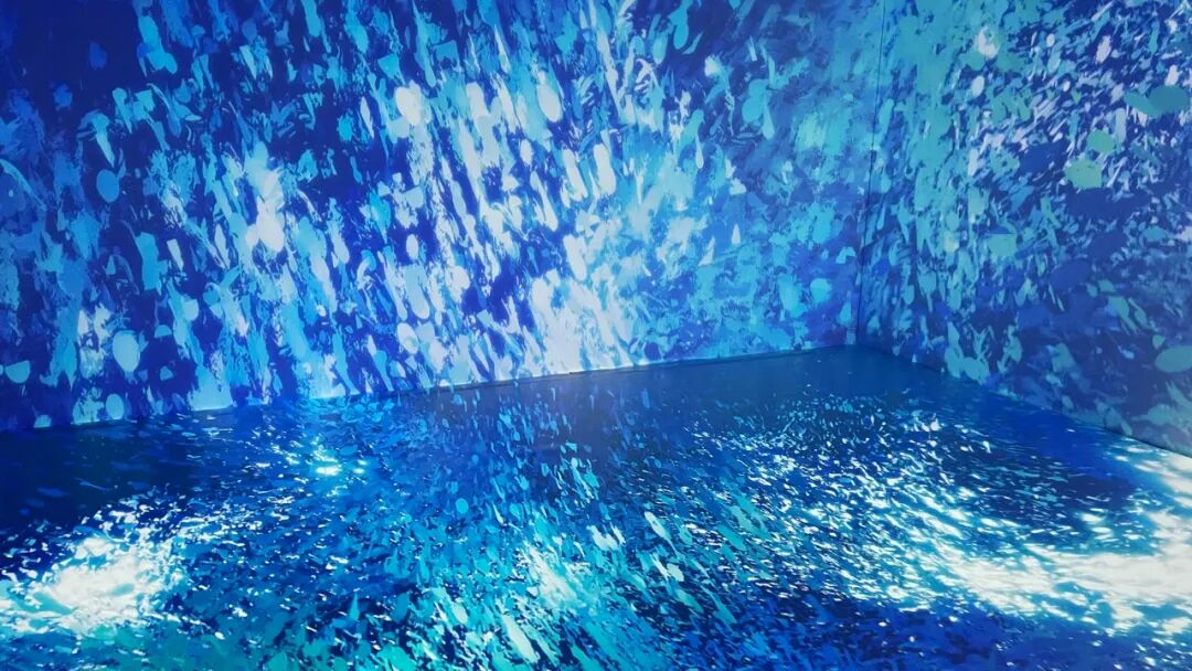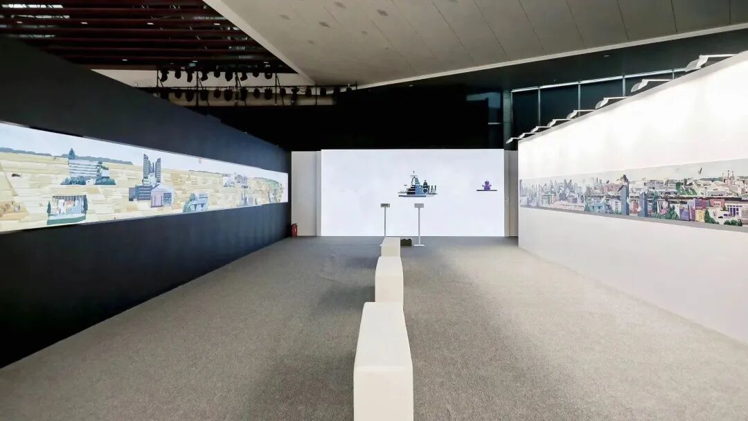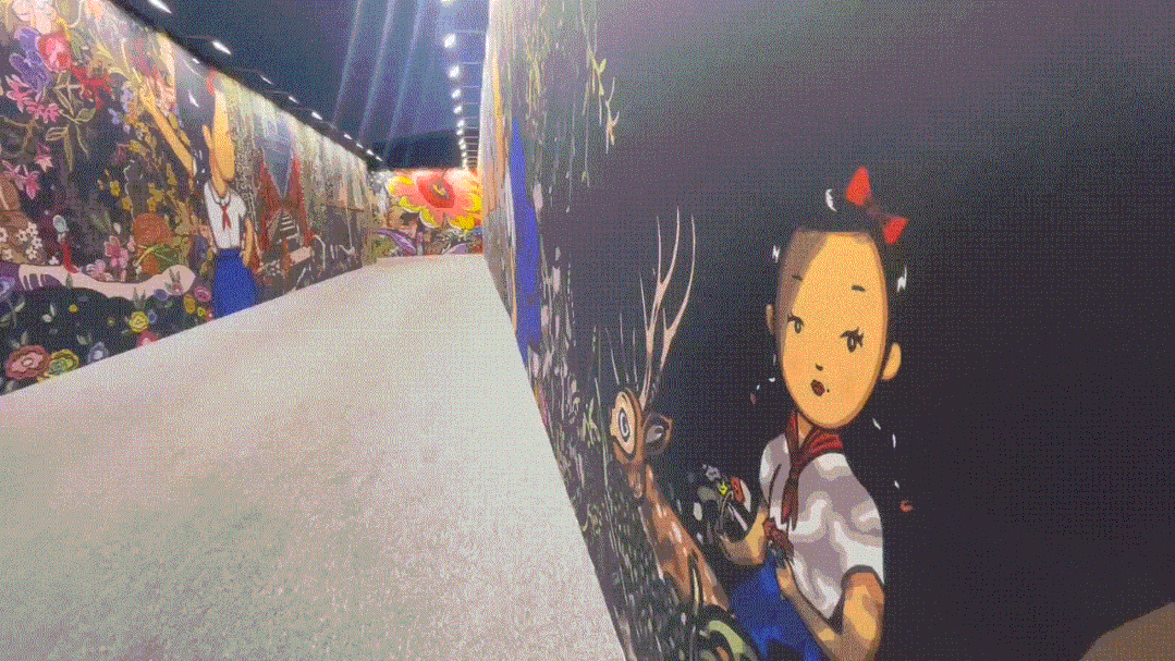 当人近距离观看时,画幅超出了视野范围,所以必须移动才能完成观看行为,这是自然而然的互动,同时也是观者跟画中时间概念同步,边移动变感受过去现在和未来的具象信息顺序涌来,与时间和空间对话。