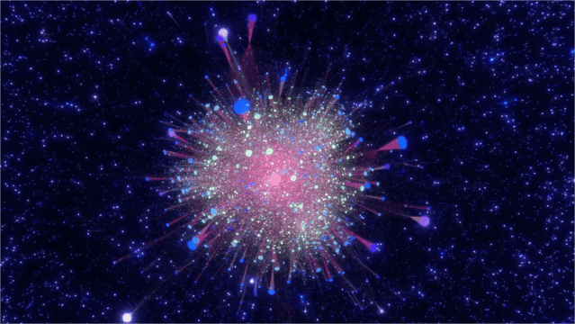作品利用数据进行可视化渲染,让观众深度体会到科技与艺术结合的技术美学魅力。此作品以经开区总产值为核心数据,以企业分布为次级数据,展示经开区高精尖丰富的企业数量和创造的骄人成绩。