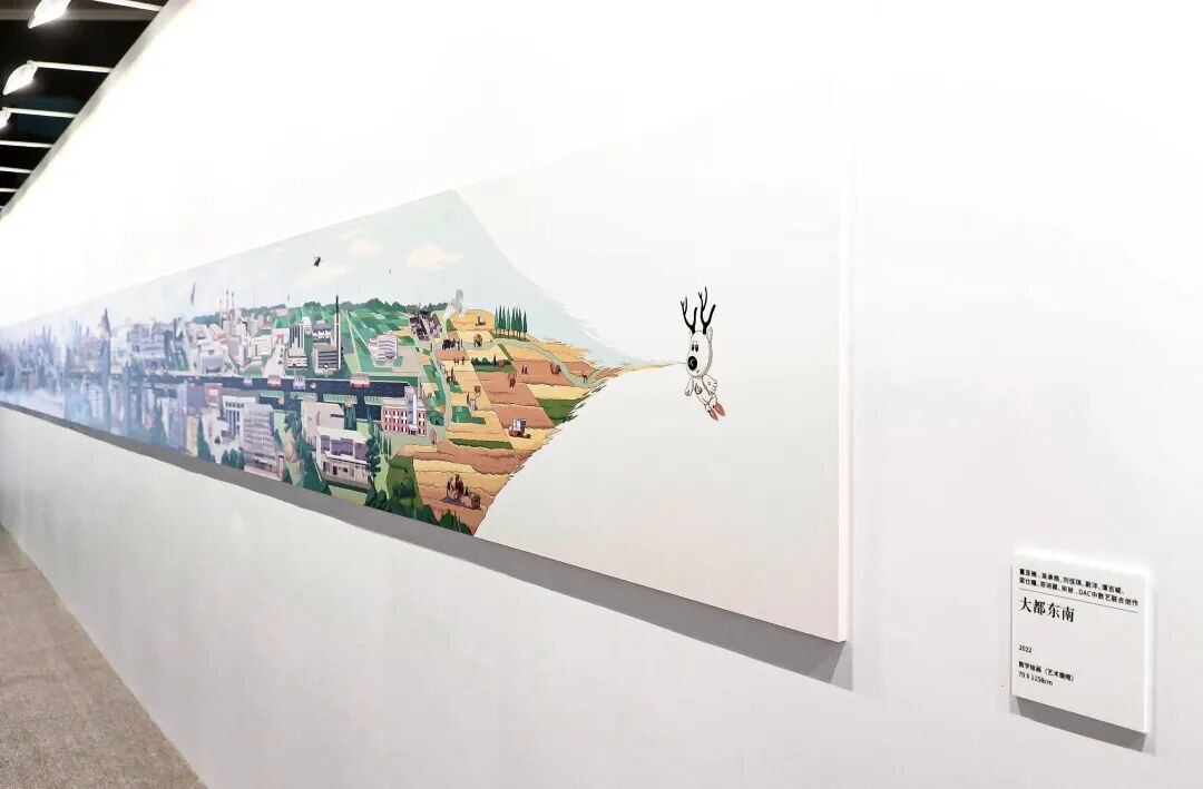 这件历时八个月由DAC数字艺术中国和董亚楠等十余位数字艺术家共创的数字艺术画卷,以中国画散点透视方法和数字动画跨时空表现了北京经开区30年的发展和这座城市的过去、现在和未来。在展览中同时以15米巨屏呈现出数字交互绘画和纸本画卷两种形制,二者交相辉映,构建成科技与艺术融合共生的场景,被誉为“亦庄版的新《清明上河图》”,走入展厅的观众惊叹:“仿佛进入了亦庄的元宇宙”。
