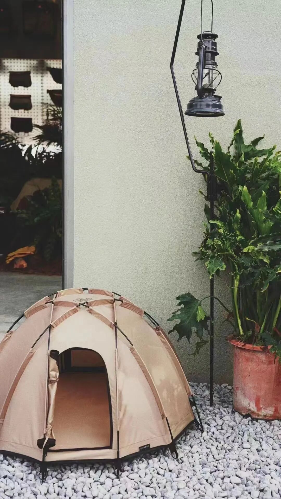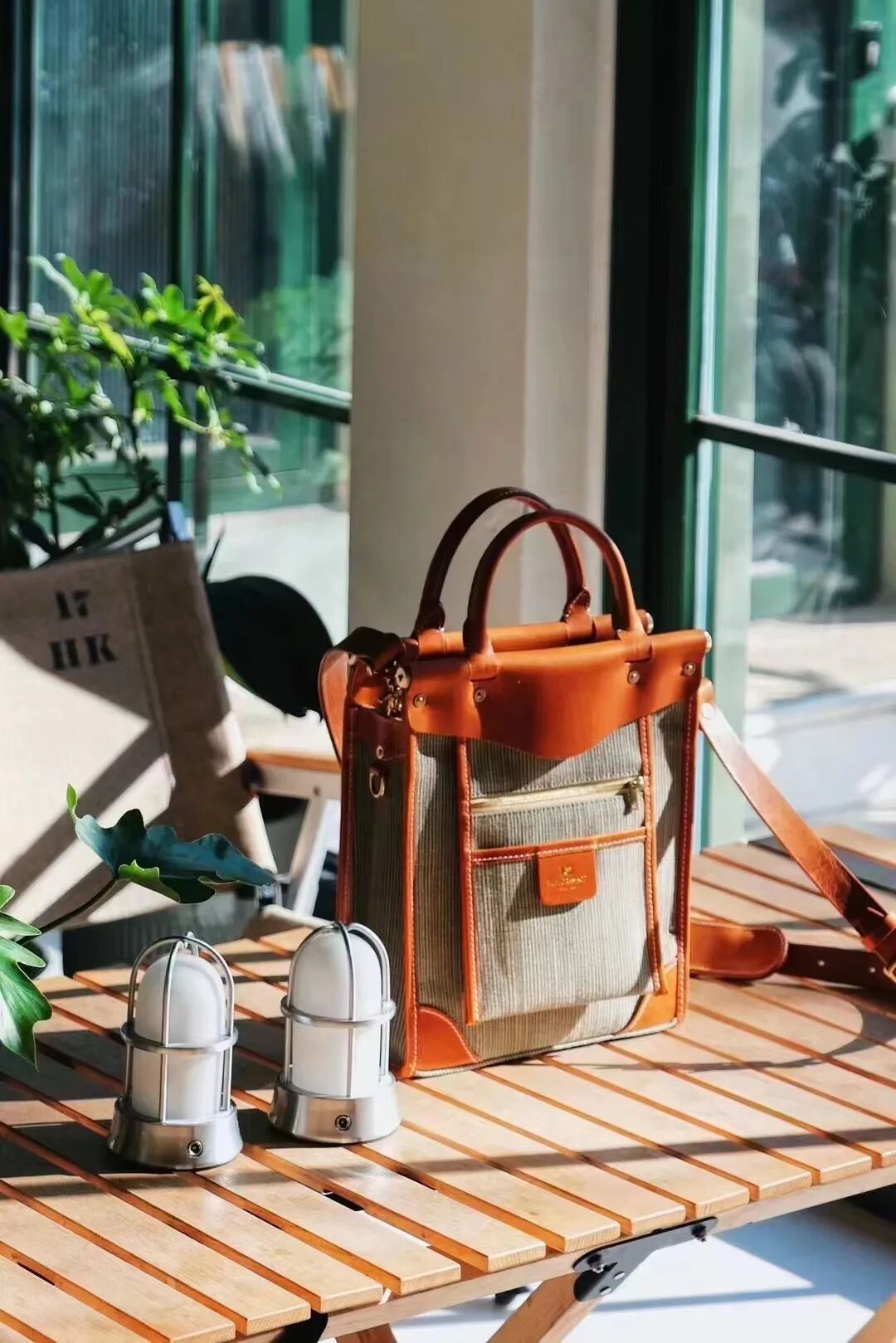 除了手工皮具,又衍生出了一个全新的HK+空间。这是一间带院子的老房子,窗户很有意思的采用了可向上折叠的落地窗,将室内与户外的界限变得模糊,整个空间略带轻量化露营感。