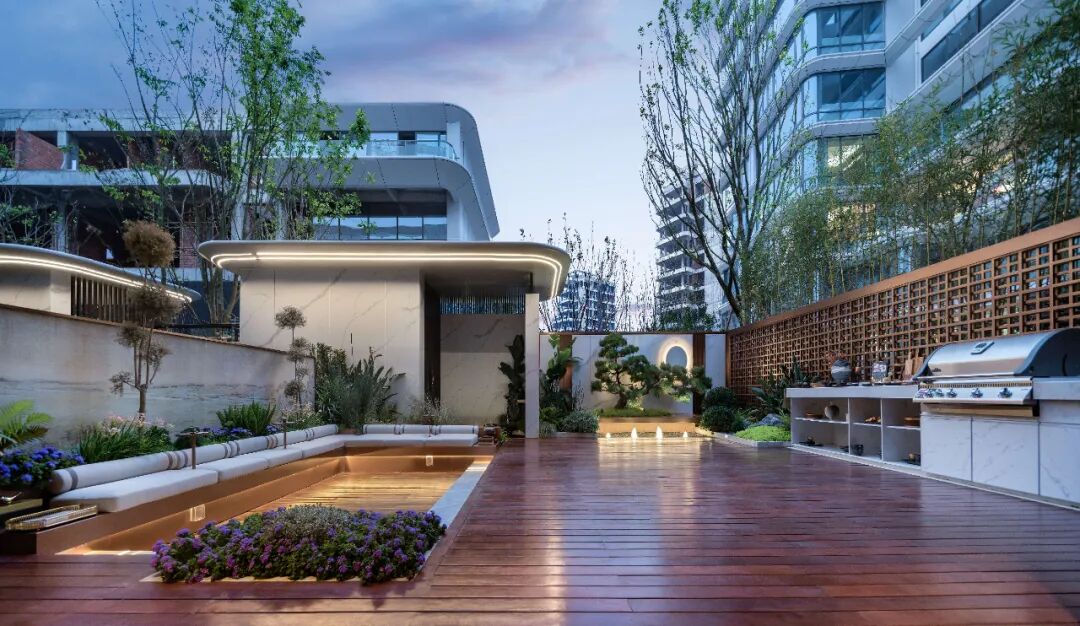 这样一来,地面入户花园具备了“空中花园”功能,能在会客、欢聚、BBQ等户外惬意场景中自然切换。