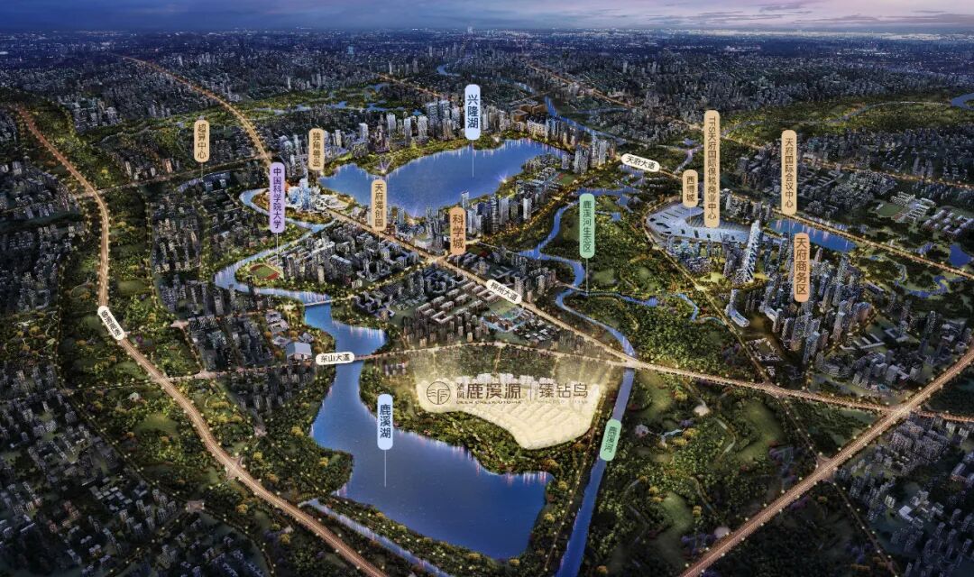 项目地处天府新区总部商务区与中国(西部)科学城的黄金交汇核心地段之上,坐享约5100亩兴隆湖湿地公园、约4500亩鹿溪河生态区、约730亩私享鹿溪湖,对望天府新区最大的CBD集群,这种与繁华咫尺之遥,却不被喧嚣所扰的距离,正是城市隐贵所青睐并向往的。