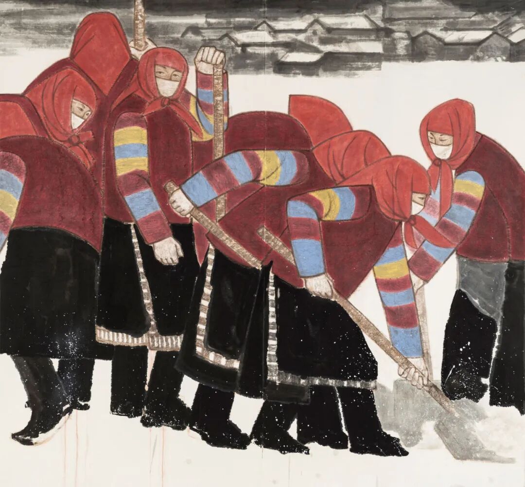 谢桂贞《乡土的第一场雪》180cm×190cm 青海