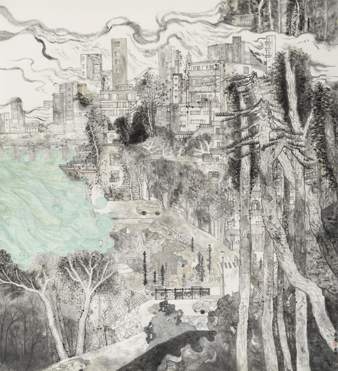 董小明《维港晨雾》95cm×180cm 广东