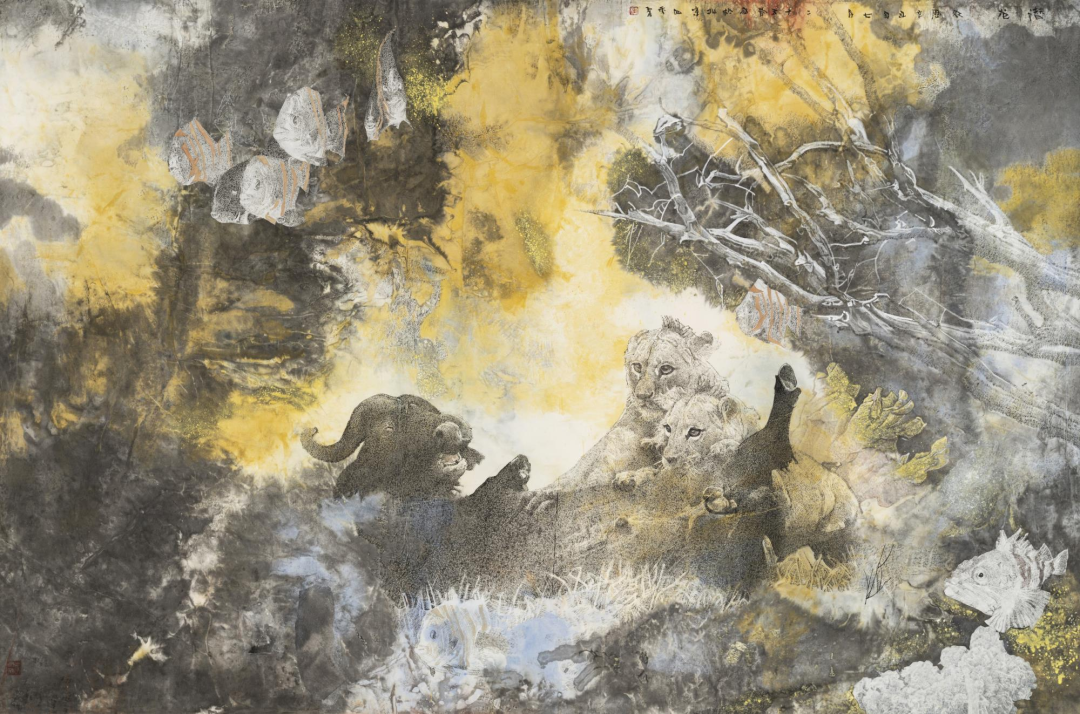 袁立《瑞狮图》228cm×120cm 广东
