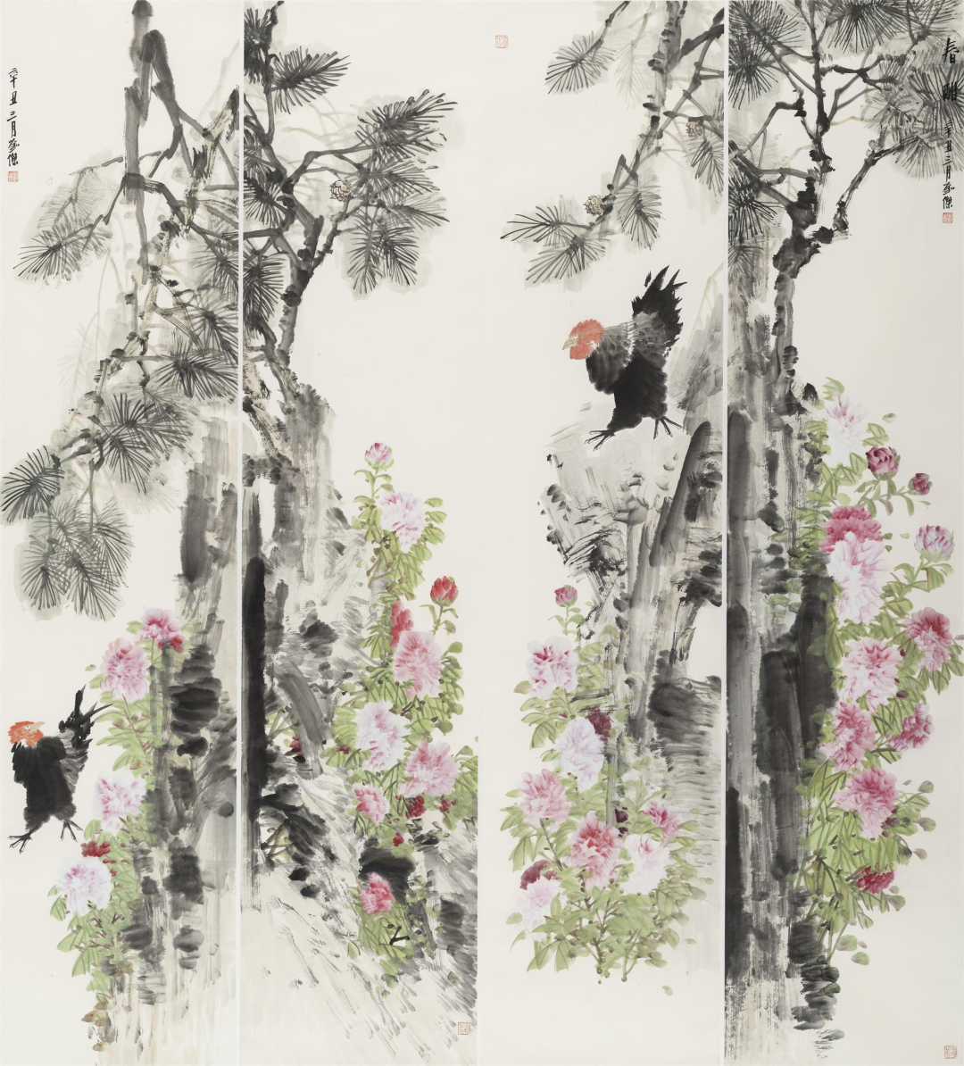 陈湘波《翠羽清风》145cm×59cm×3 广东