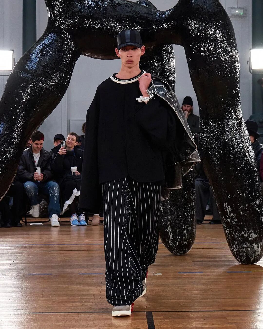 乐章突转,在迷雾中多束灯光倾泻而下,模特穿梭其中,手拿Louis Shengtao Chen的经典单品石膏穿插体包,本季服装中的立体造型和柔软质感的冲突与搭配,也展现出Louis Shengtao Chen希望通过服装赋予女性的力量。
