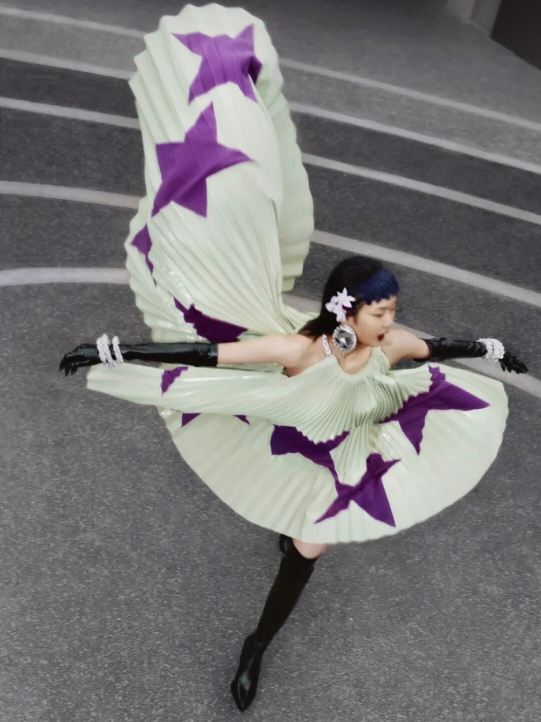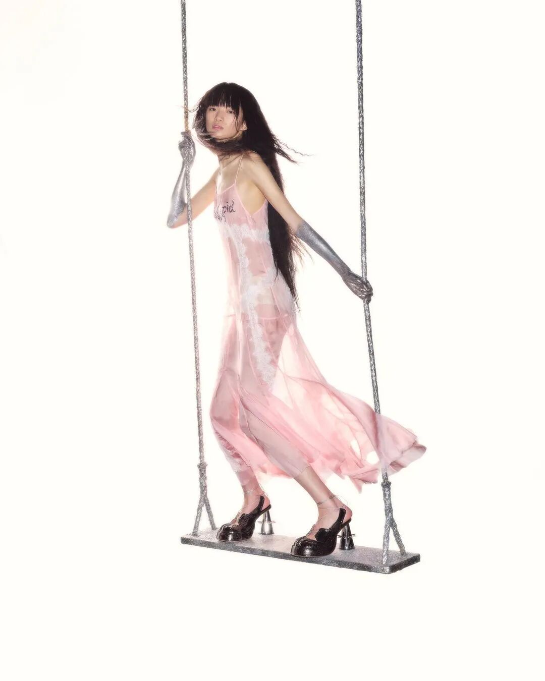 秋千上的亮片星光点点,是温柔的月色为人们编织的美梦,在灯光的流转中,向人们诉说着品牌本季的浪漫情愫。