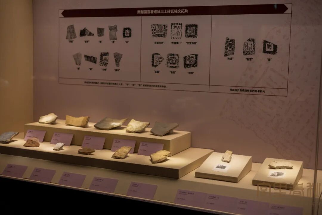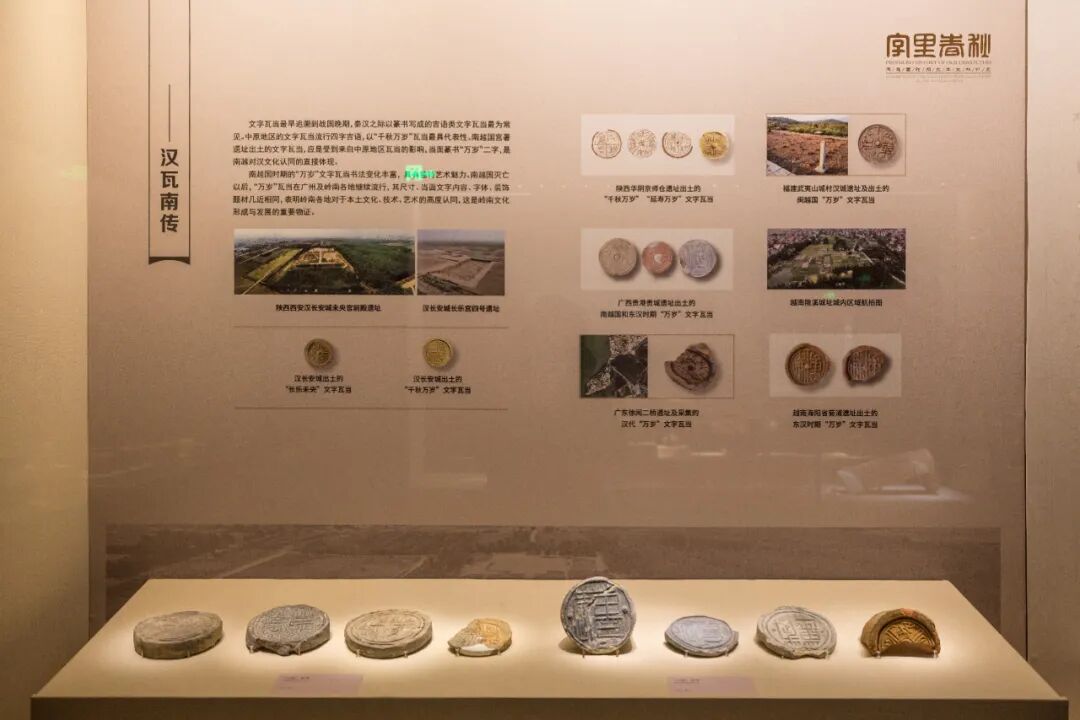本次展览还将南越国宫署遗址出土的文字瓦当与同时期中原地区、闽越地区的文字瓦当照片,以及南越国灭亡后东汉时岭南地区的文字瓦当作了对比,从字形、吉语、表现形式等方面,显示了岭南对中原汉文化的认同,以及岭南文化在吸收汉文化后的形成与发展。