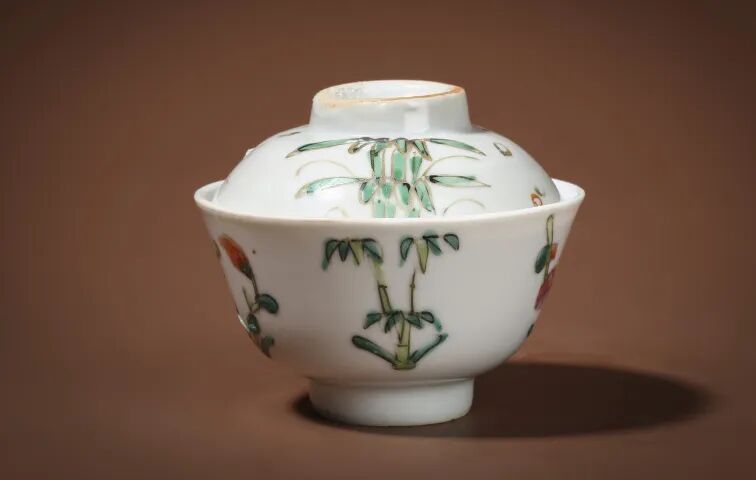 此件清晚·粉彩梅兰竹菊纹盖碗,敞口大开,深腹渐收,底承圈足,施白釉为地,外壁绘粉彩梅兰竹菊纹,四枚花卉对称而设,布局分明,花繁叶茂,姿态鲜活,色彩简洁素净,观之清新典雅,器件小巧怡人又不失高雅格调,寓意美好。