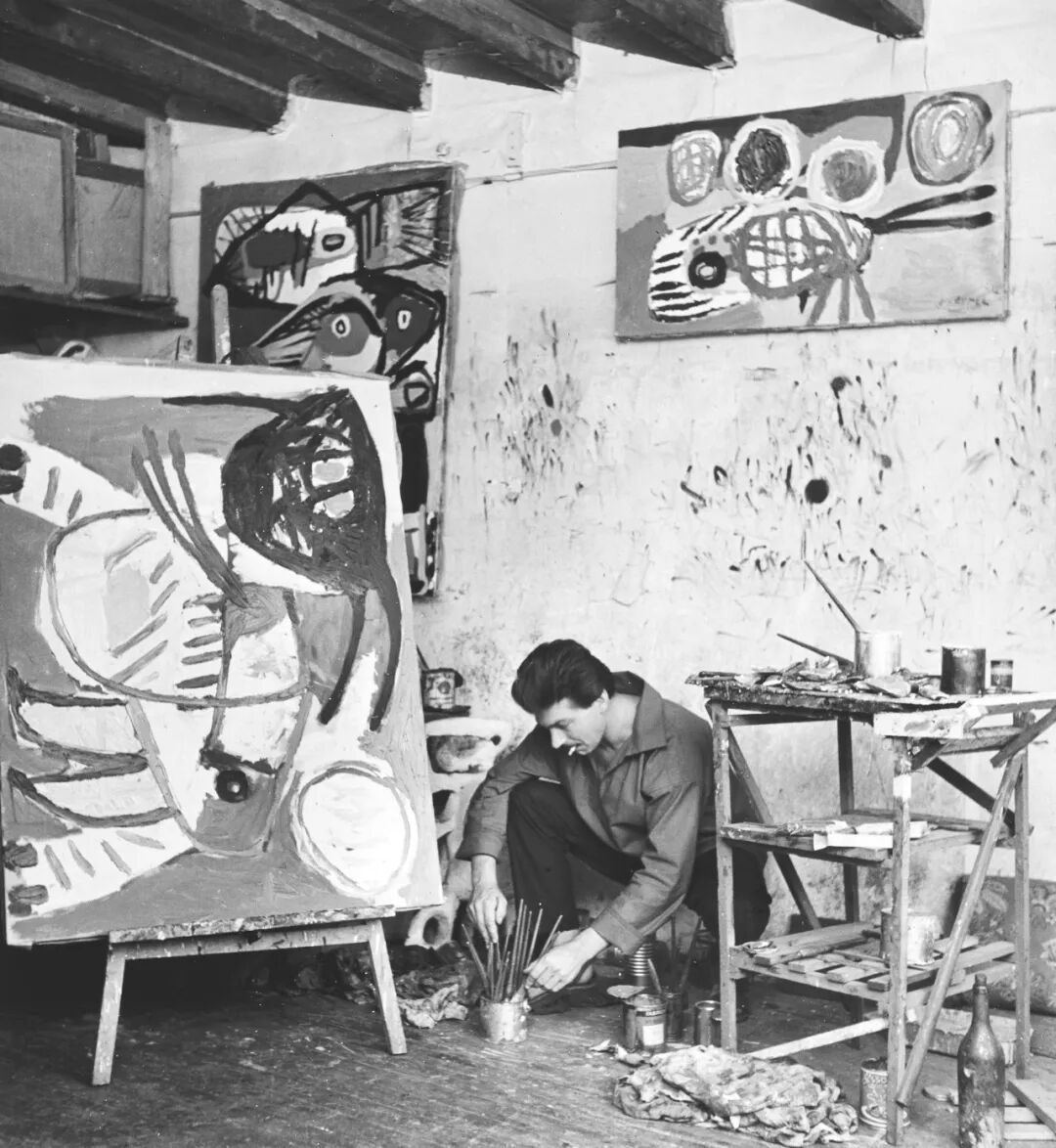 卡雷尔·阿佩尔于巴黎的第一间工作室,1952年 / © 卡雷尔·阿佩尔基金会 / ADAGP,巴黎,2023 - 致谢阿尔敏·莱希与卡雷尔·阿佩尔基金会 - 摄影:Robert Capa