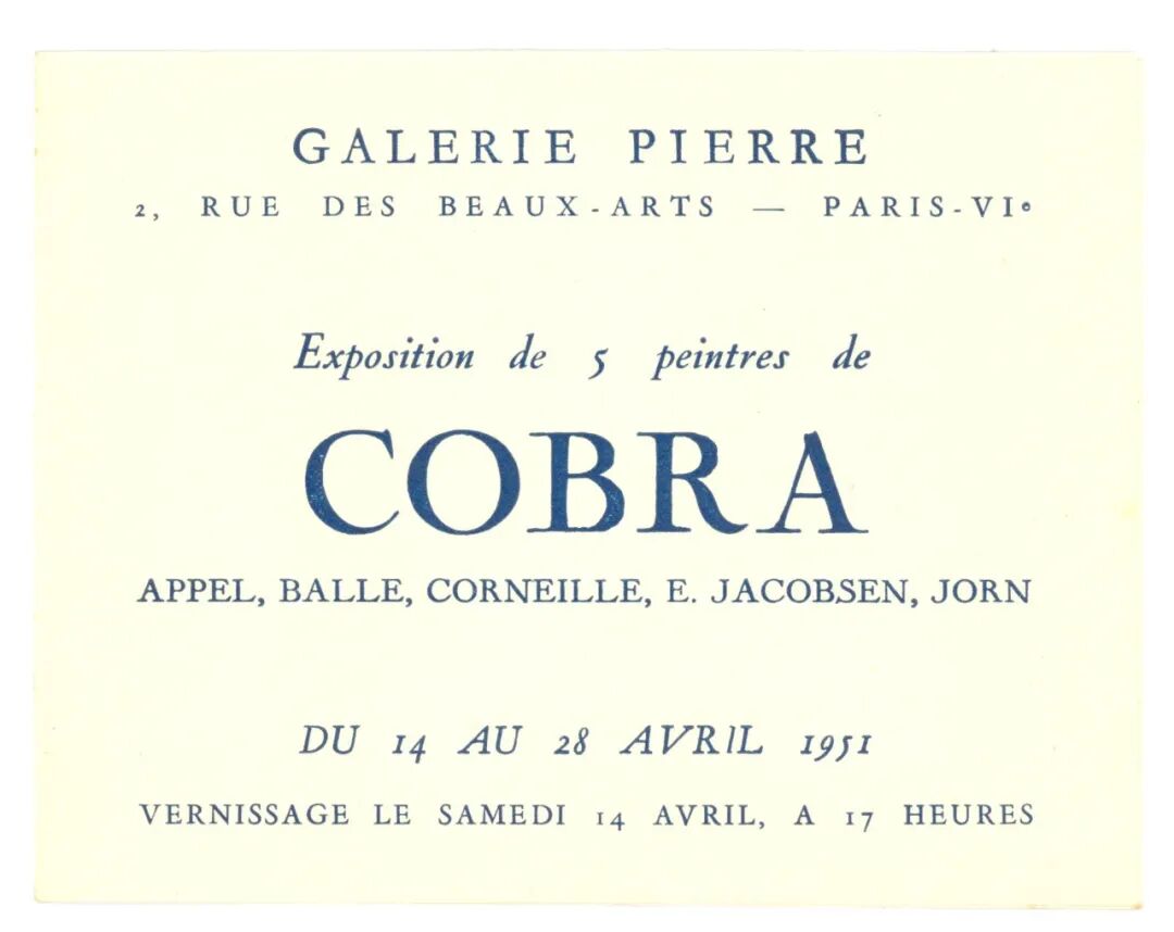 受保罗·克利(Paul Klee)和胡安·米罗(Joan Miró)作品的启发,阿佩尔开始尝试用一种原始的技法对绘画对象进行描绘,让人联想起民间艺术(folk art)。1948年,他与阿斯葛·琼(Asger Jorn)、康斯坦特·尼尤温荷斯(Constant Nieuwenhuys)、柯奈·纪尧姆·贝韦洛(Corneille Guillaume Beverloo),以及其他一些同样拒斥理性主义与几何抽象的艺术家们,联合创立了CoBrA小组,旨在通过自发的诗歌和绘画创造一个乌托邦。“CoBrA”为艺术家主要活动范围的地名的缩写集合:Copenhagen(哥本哈根)、Brussels(布鲁塞尔)和Amsterdam(阿姆斯特丹)。