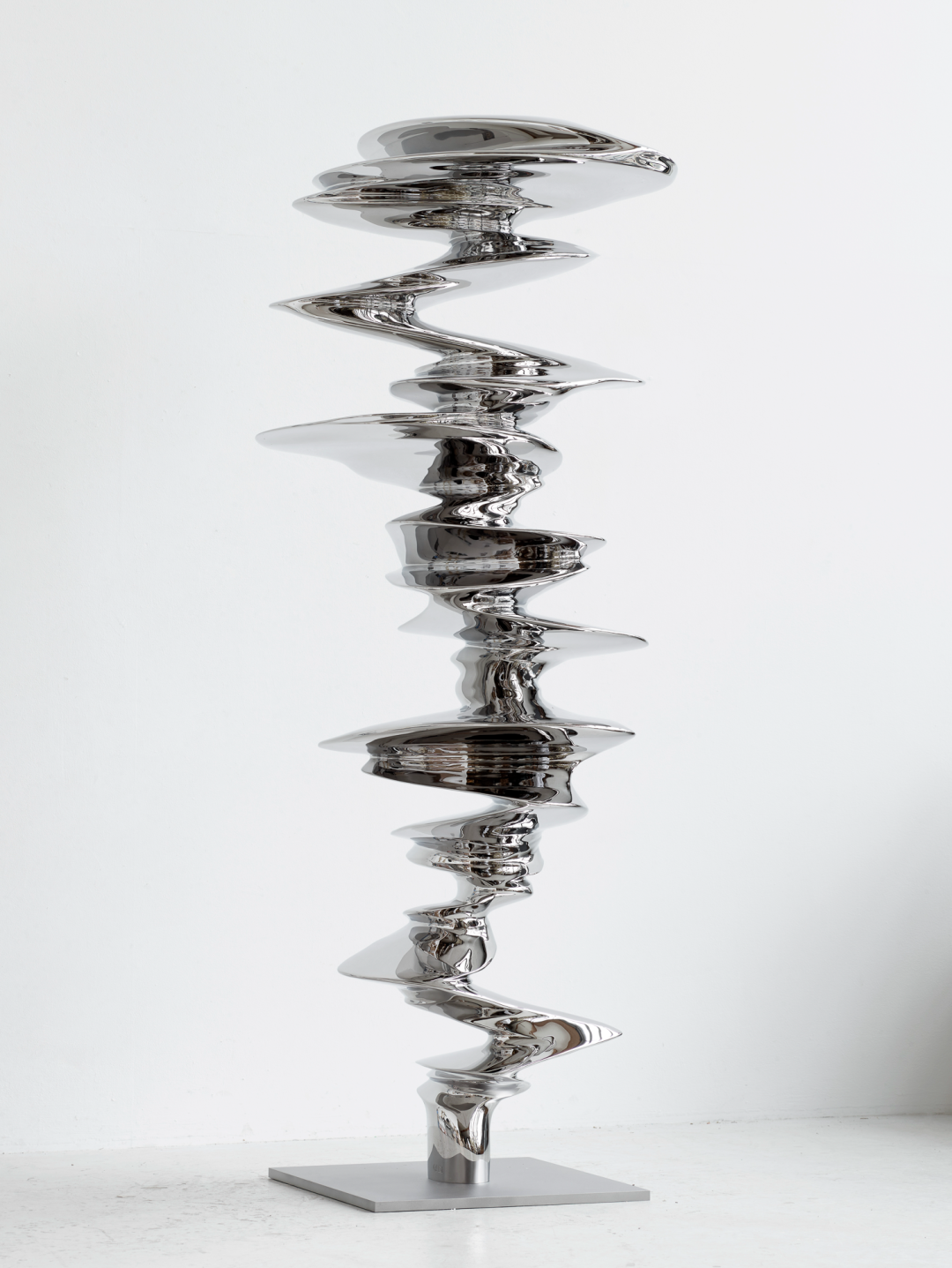 Tony Cragg, Elliptical Column, 2021, Stainless steel, 223 x 78 x 92 cm, 87 3/4 x 30 3/4 x 36 1/4 in ed. 3 of 6 + 1 AP © Tony Cragg. Courtesy Lisson Gallery