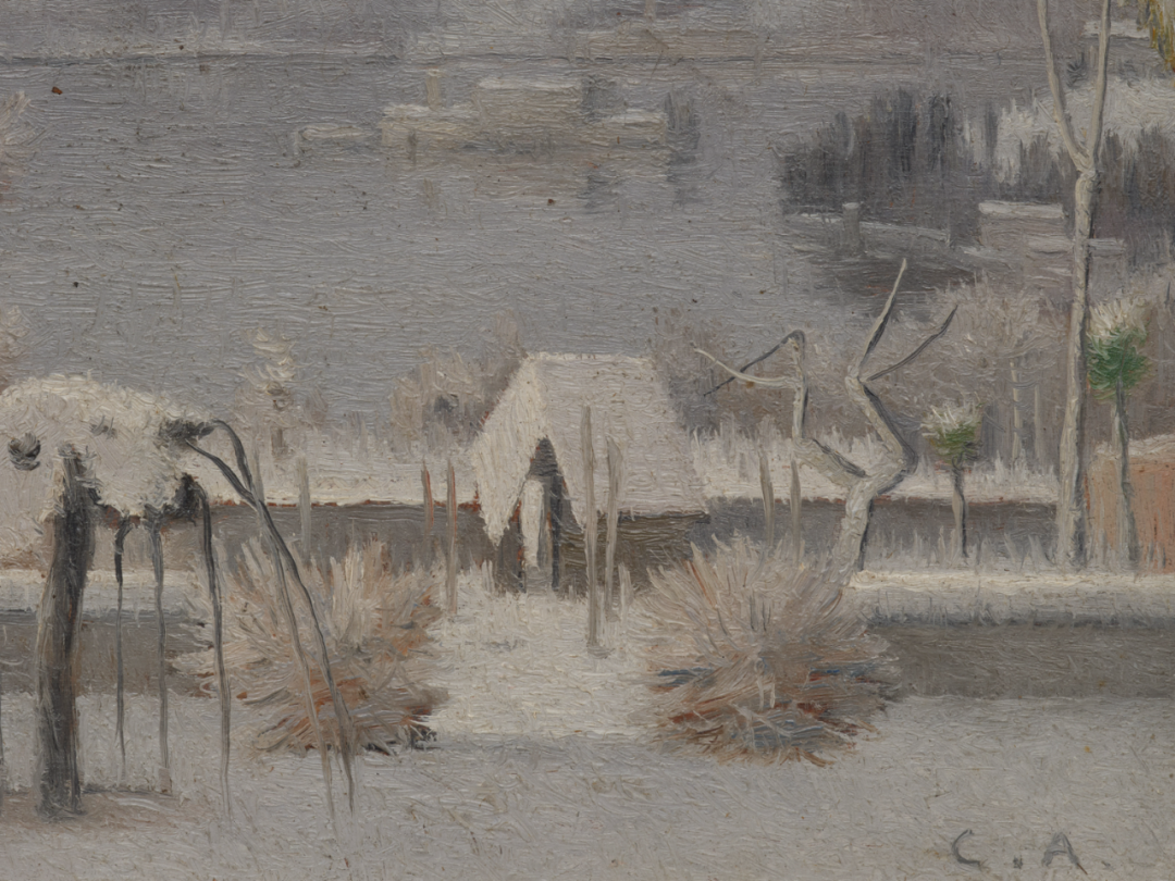 Antonio Calderara, il lago d'Orta (Detail), 1949, Oil on wood, 18 x 22 cm, 7 1/8 x 8 5/8 in © Estate of Antonio Calderara. Courtesy Lisson Gallery